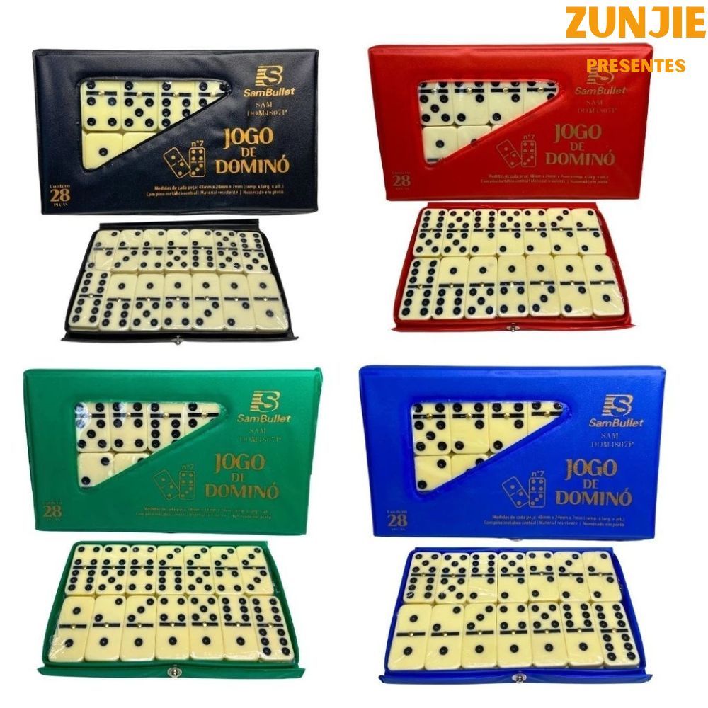 Jogo De Dominó De Osso Profissional Com 28 Peças Com Estojo De Maleta Com Cores 5010P