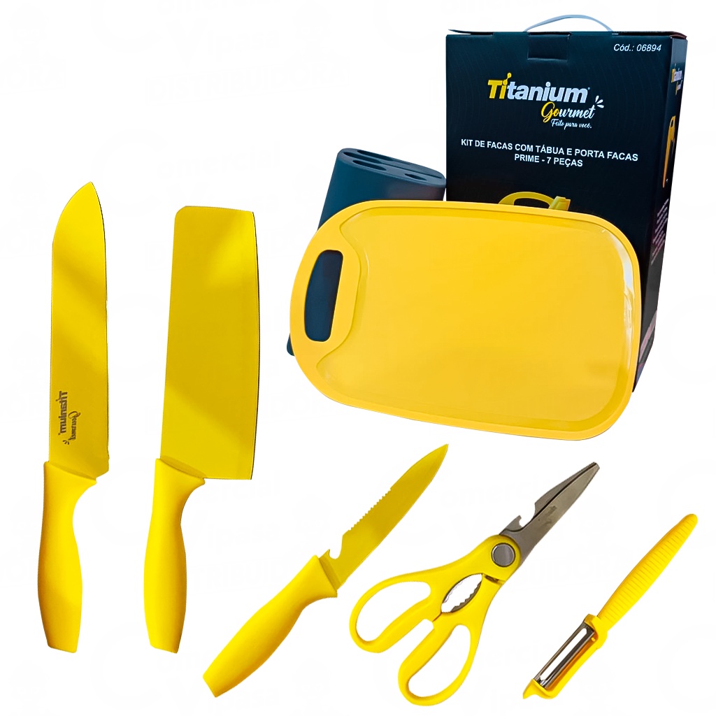 Jogo De Facas Cozinha Gourmet Com Tabua 7 Peças E Suporte Kit Estiloso Ergonômico Utensílios