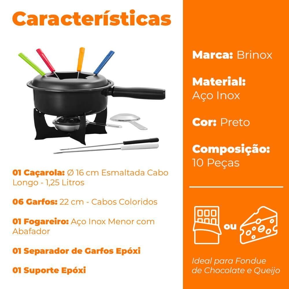 Jogo De Fondue 10 Peças Preto - Brinox 1214/116