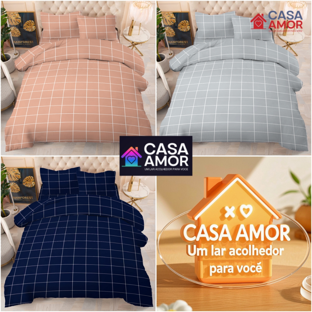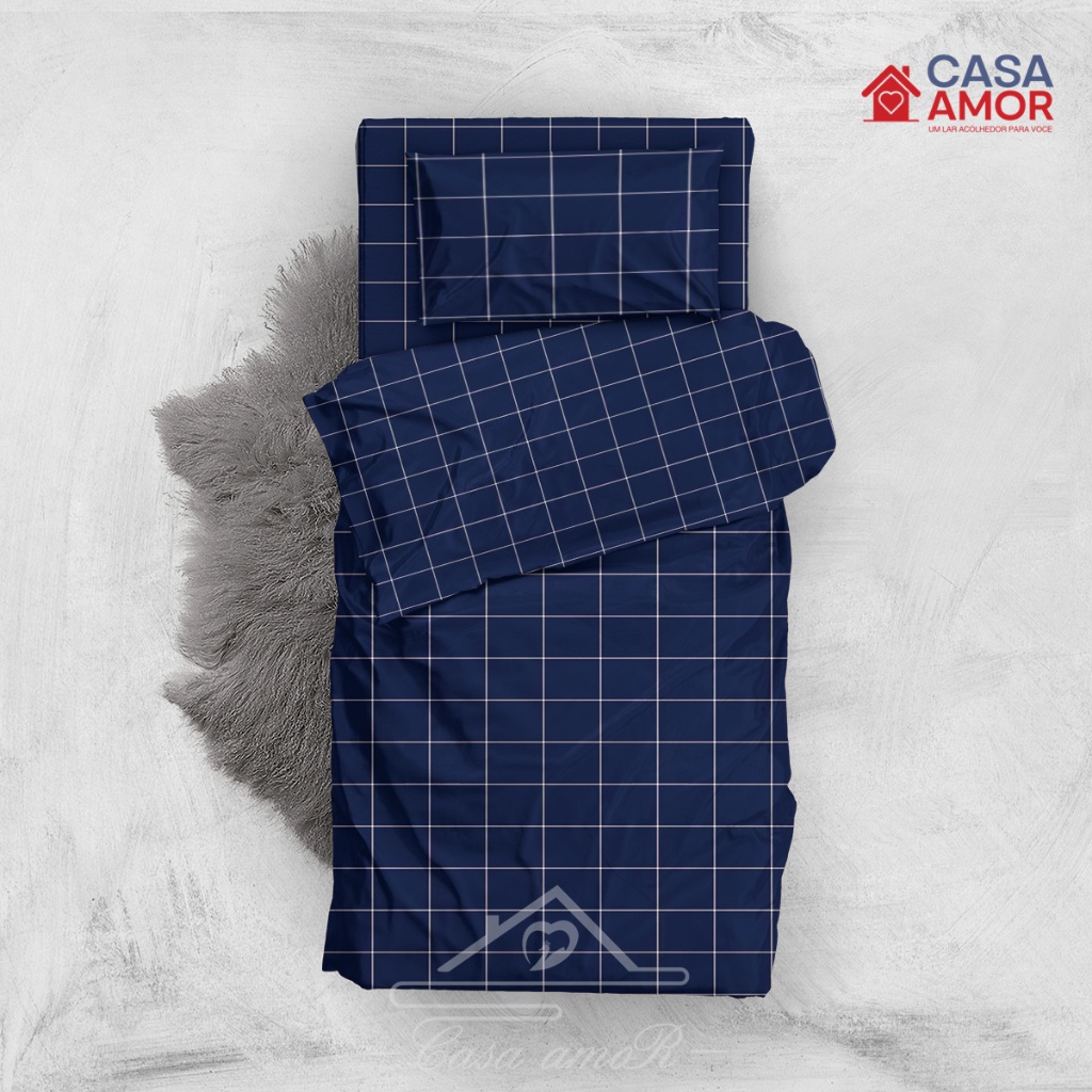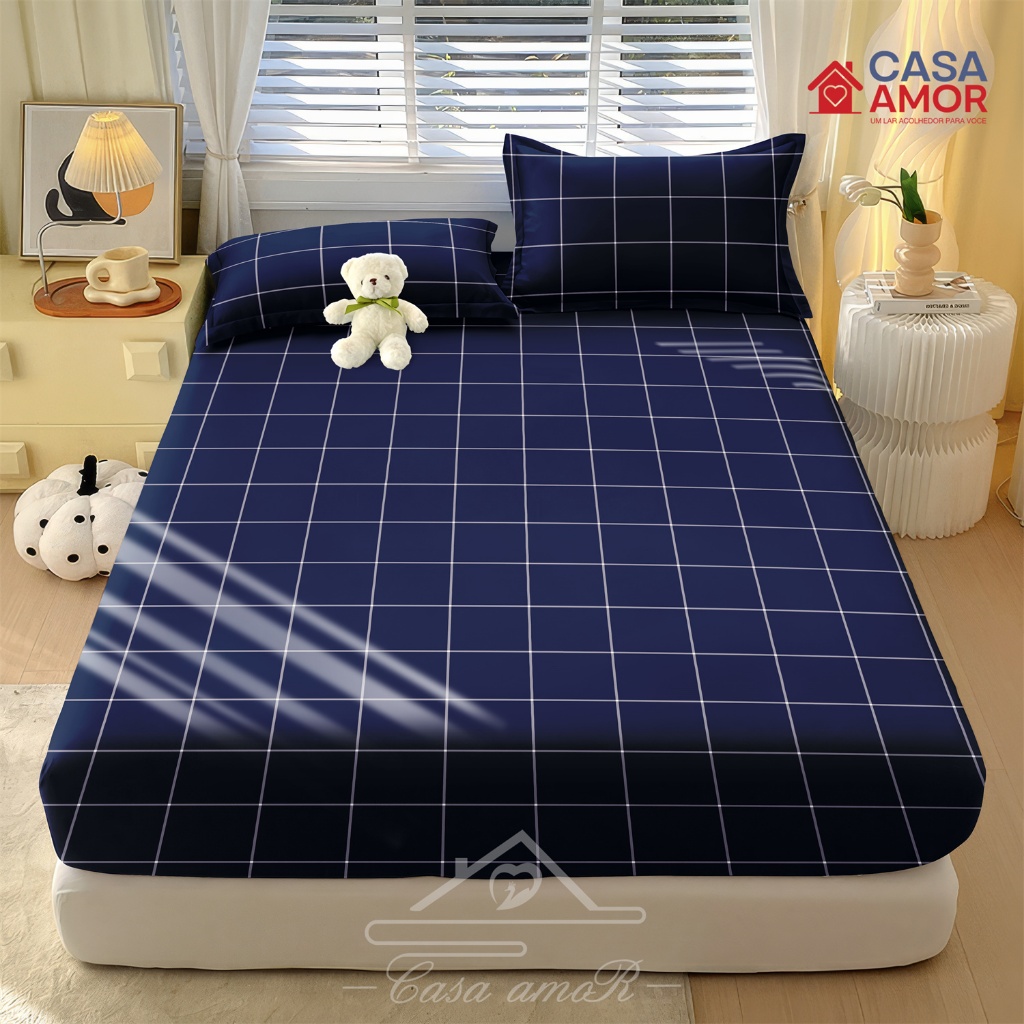 Jogo De Lençol 02 03 Peças SOLTEIRO/ CASAL/ QUEEN Percal Estampado xadrez / rosa/ azul marinha / cinza