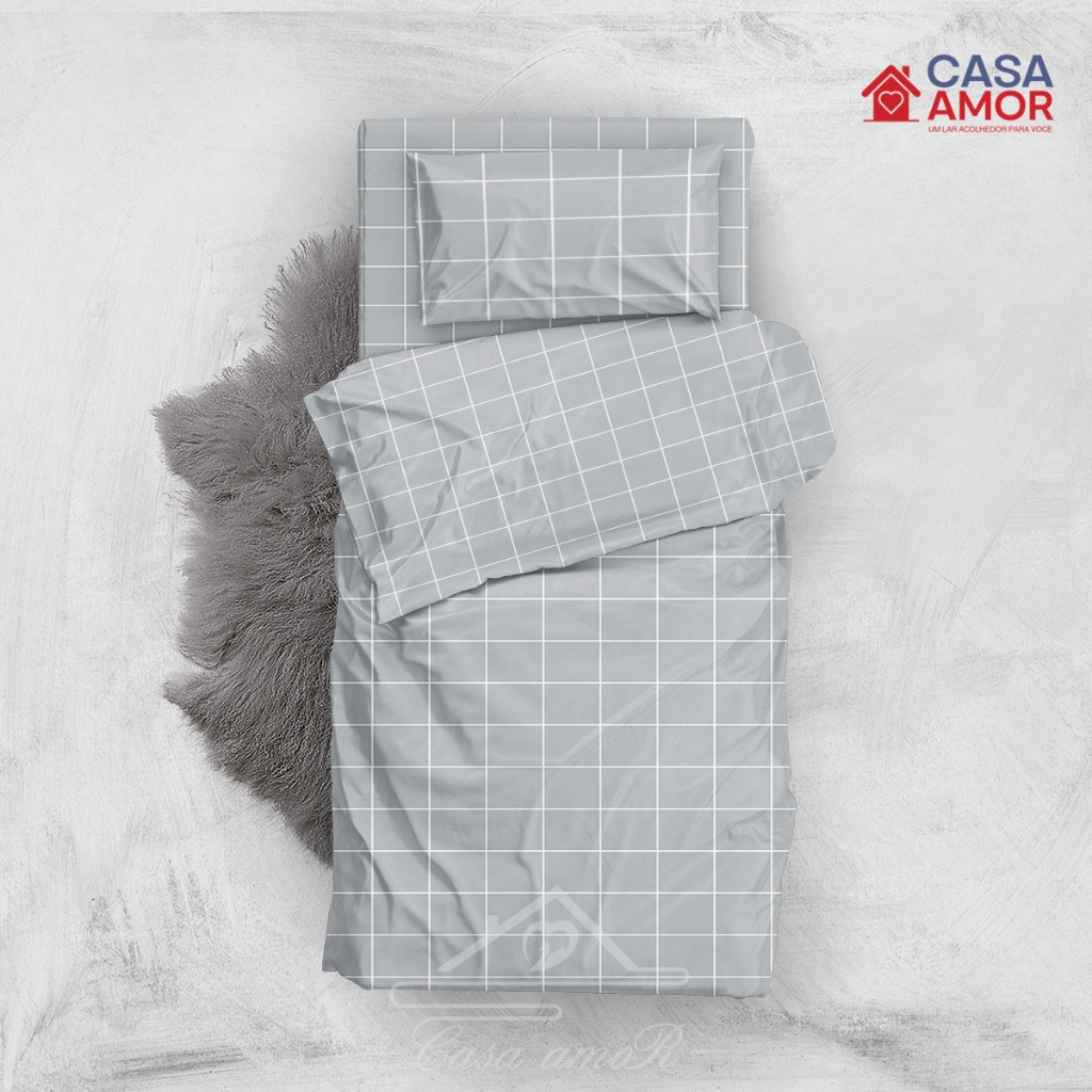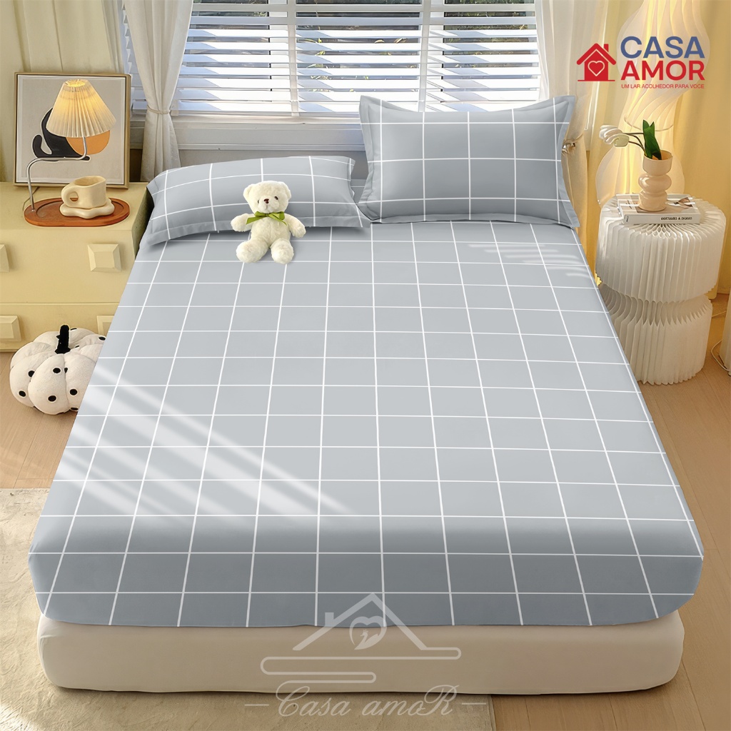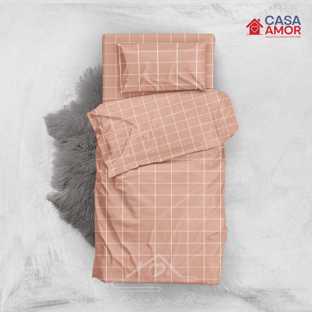 Jogo De Lençol 02 03 Peças SOLTEIRO/ CASAL/ QUEEN Percal Estampado xadrez / rosa/ azul marinha / cinza