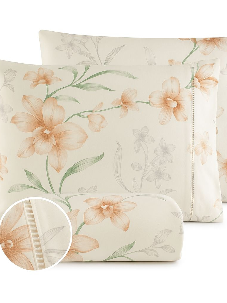 Jogo De Lençol 03 Peças Casal Padrão e Queen Percal 400 Fios Ponto Palito Estampado