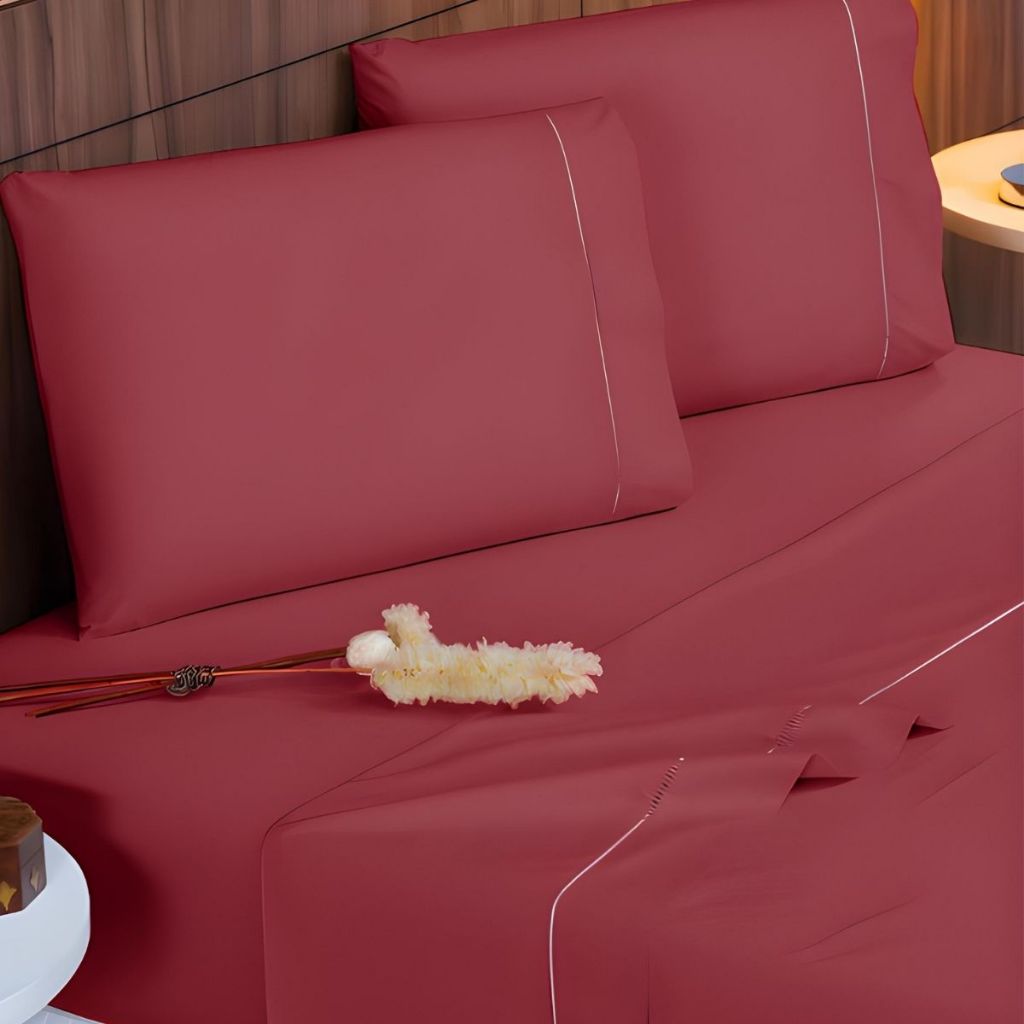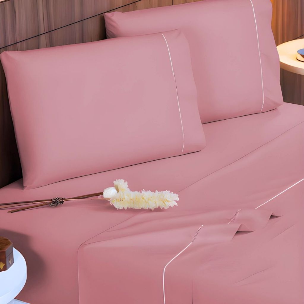 Jogo De Lençol 4 Peças 400 Fios Com Elástico Toque de Seda Detalhe Ponto Palito Lençol de Cima
