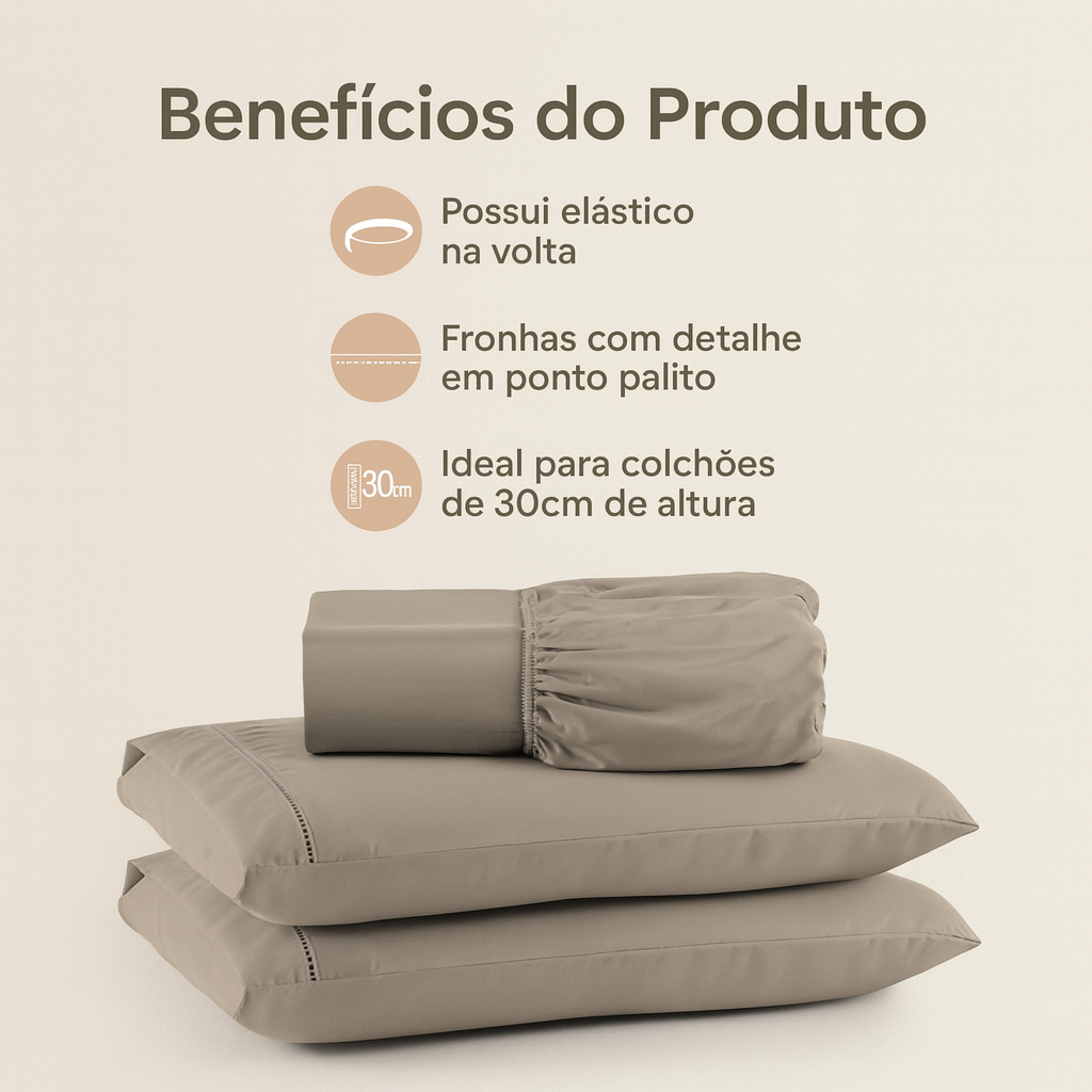 Jogo De Lençol Cama Queen 3 Peças 400 Fios Ponto Palito Cores
