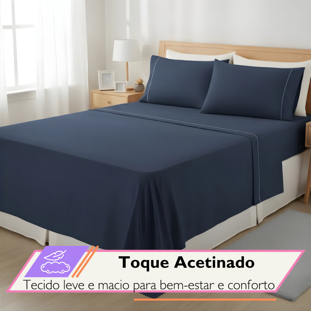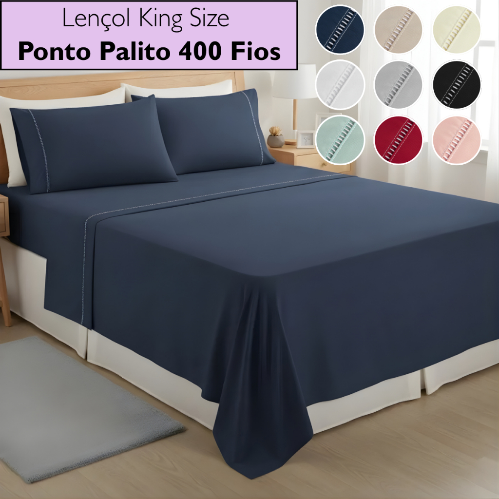 Jogo De Lençol King Size 4 Peças 400 Fios Com Elástico Toque de Seda Detalhe Ponto Palito