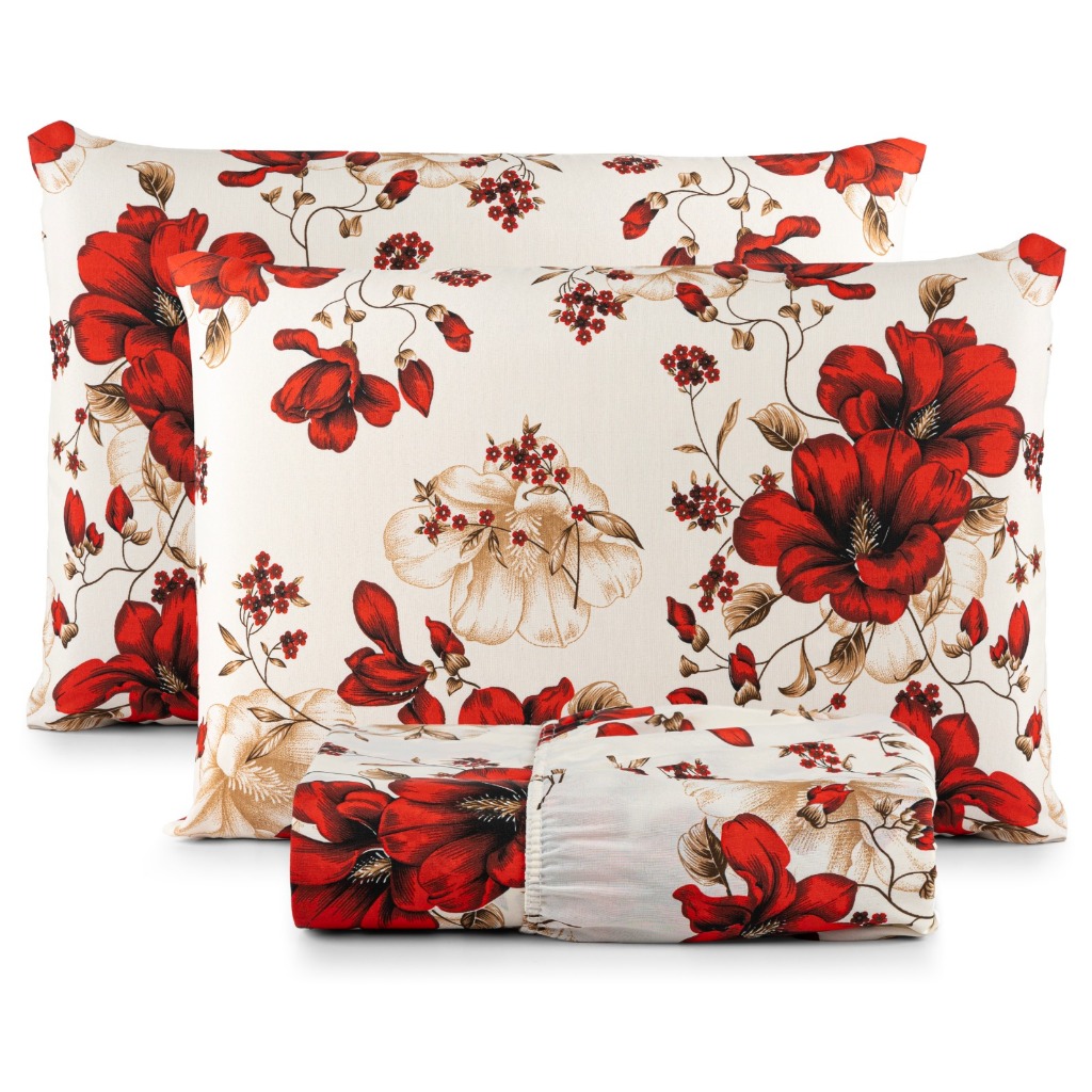 Jogo De Lençol Queen 3 Peças Algodão Percal Estampado 180 Fios