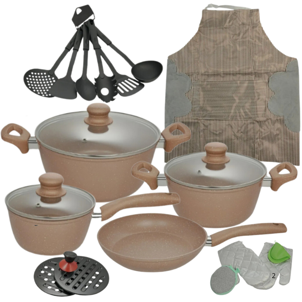 Jogo De Panela Antiaderente Com Indução Creme 21 Peças Kit De Panela Para Cozinha Com Acessórios