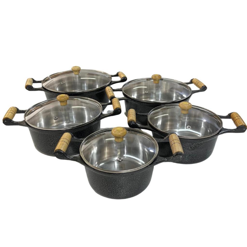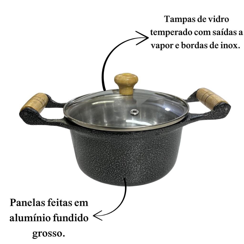 Jogo de Panelas Alumínio Batido Fundido 7 Peças Craquelada Grossa com Tampa de Vidro