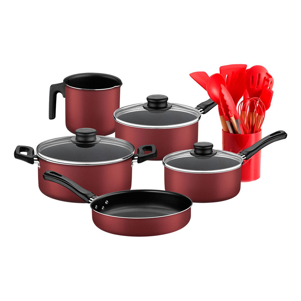 Jogo De Panelas 5 Peças Tramontina Caribe E 12 Utensílios de Silicone