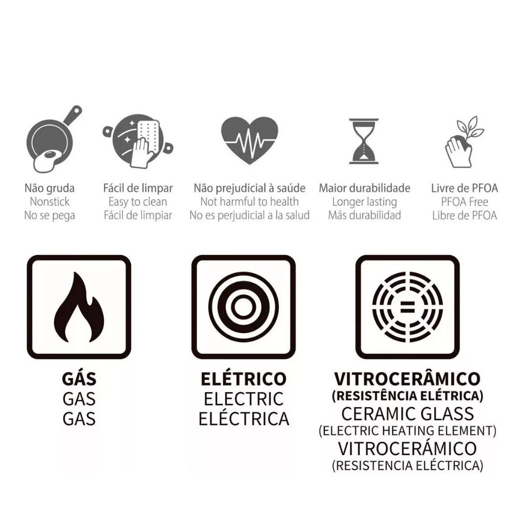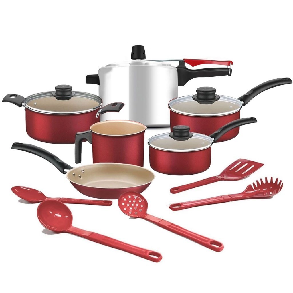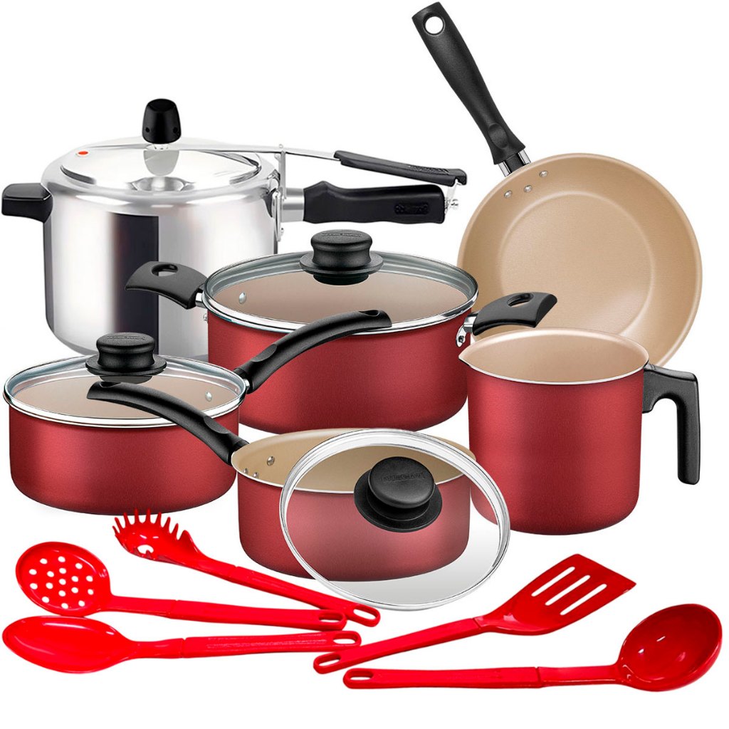 Jogo De Panelas 6 pcs Tramontina Turim com Panela de Pressão Rochedo Clock e 5 Utensílios