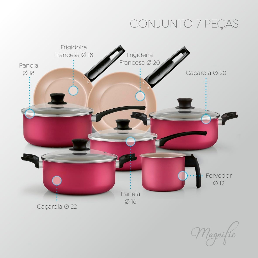 Jogo De Panelas Antiaderente Panelux Magnific Cereja 7 Peças