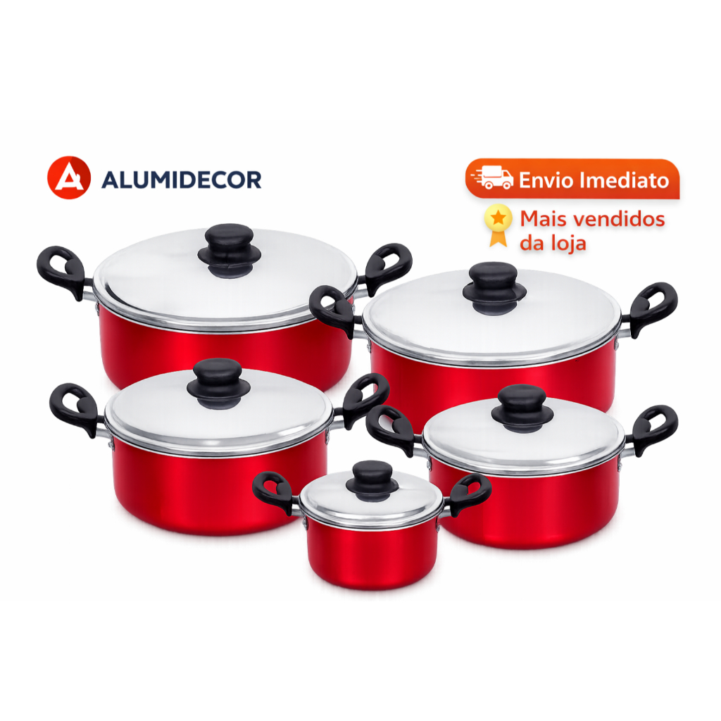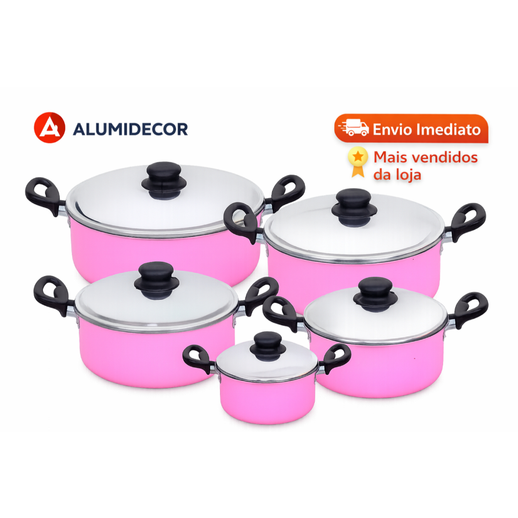 Jogo De Panelas Caçarolas 5 peças - Coloridas Alumínio