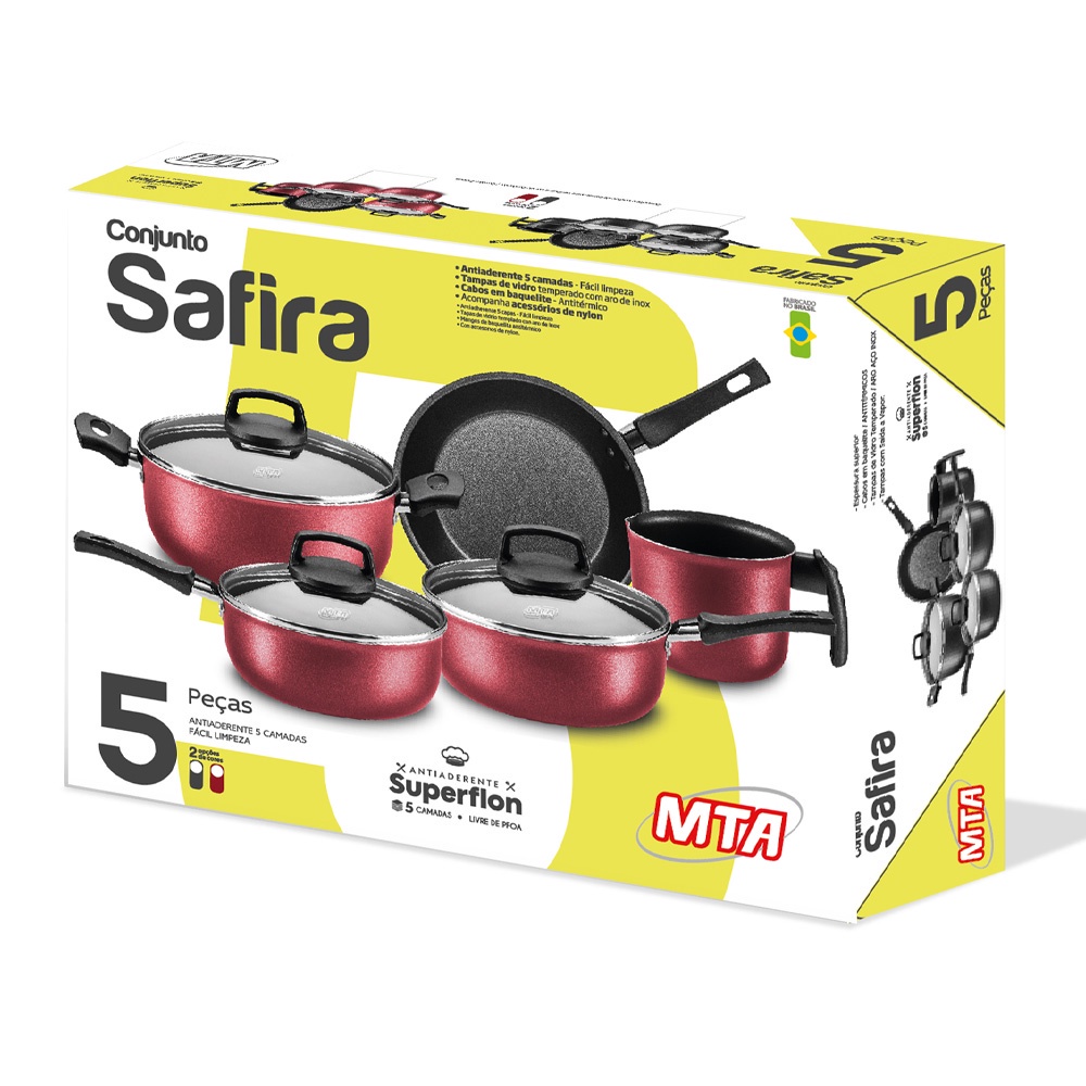 Jogo De Panelas Safira Alumínio 5pçs Starflon Grafite MTA