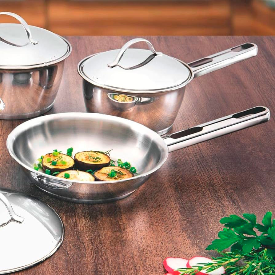 Jogo De Panelas Tramontina Allegra 6pçs Aço Inox Com Fundo Triplo Para Fogão De Indução