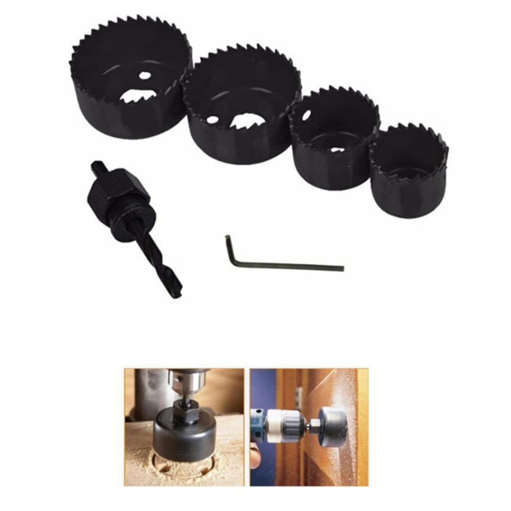 Jogo De Serra Copo 6 peças P/ Madeira Pvc Gesso C/suporte Drywall marceneiro