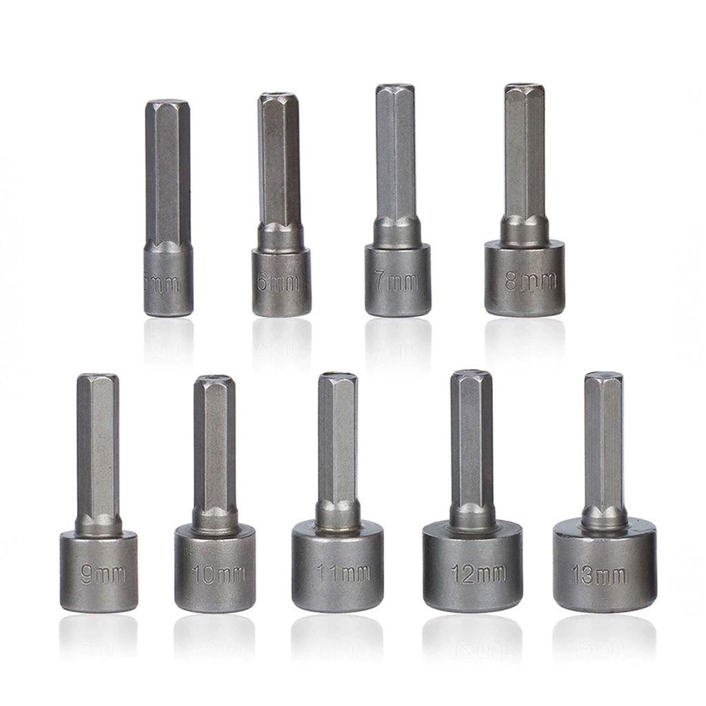 Jogo De Soquete Para Furadeira E Parafusadeira Bits Sextavado Ferramenta Profissional Aço 9 Peças