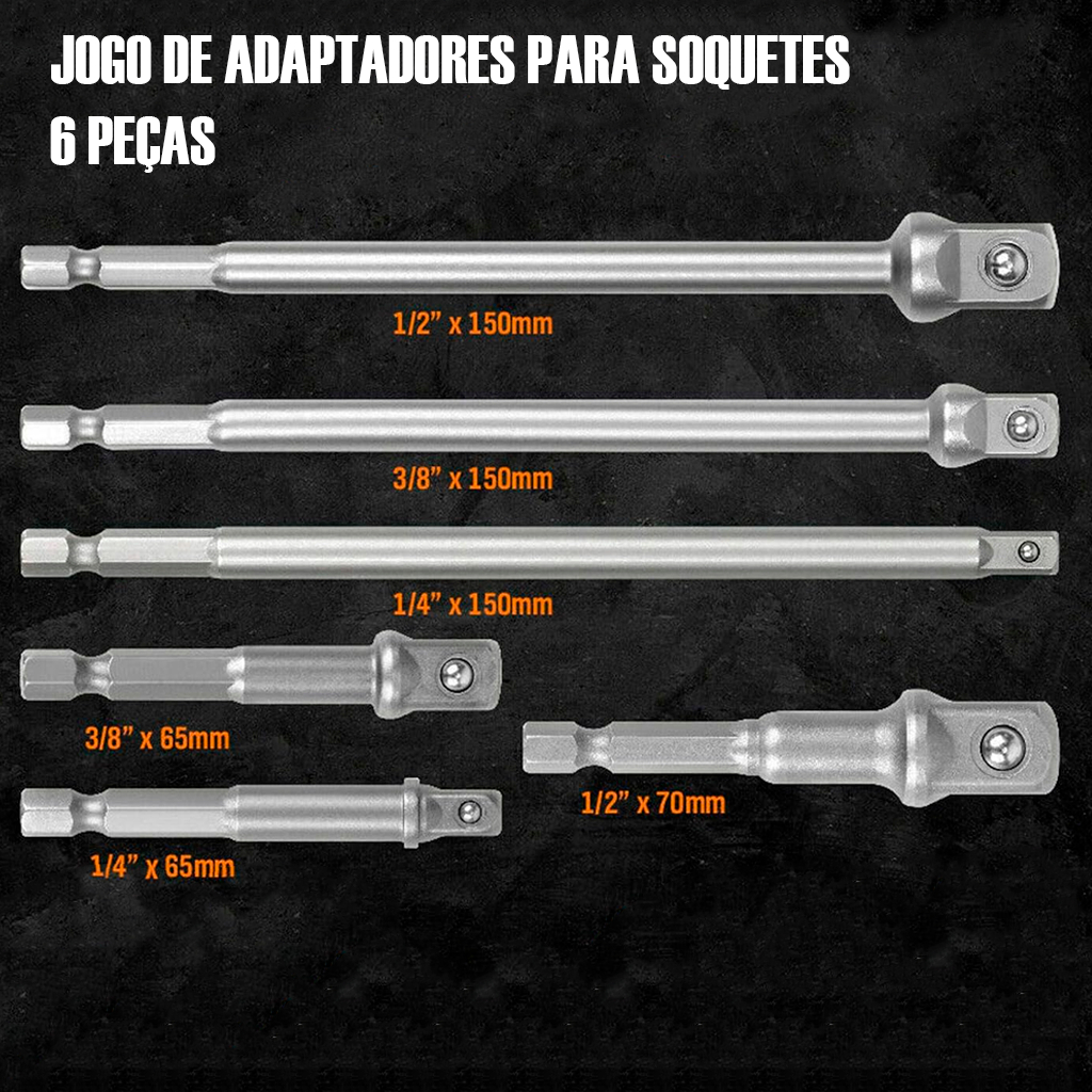 Jogo De Soquetes Adaptadores Extensão Alongador Para Soquetes Catraca Encaixe 6 Peças Parafusadeira