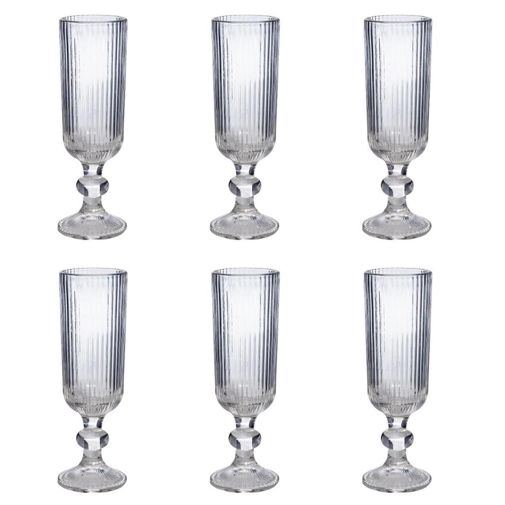 Jogo De Taça Canelada Lirio Clear Vidro 150ml 6 Peças
