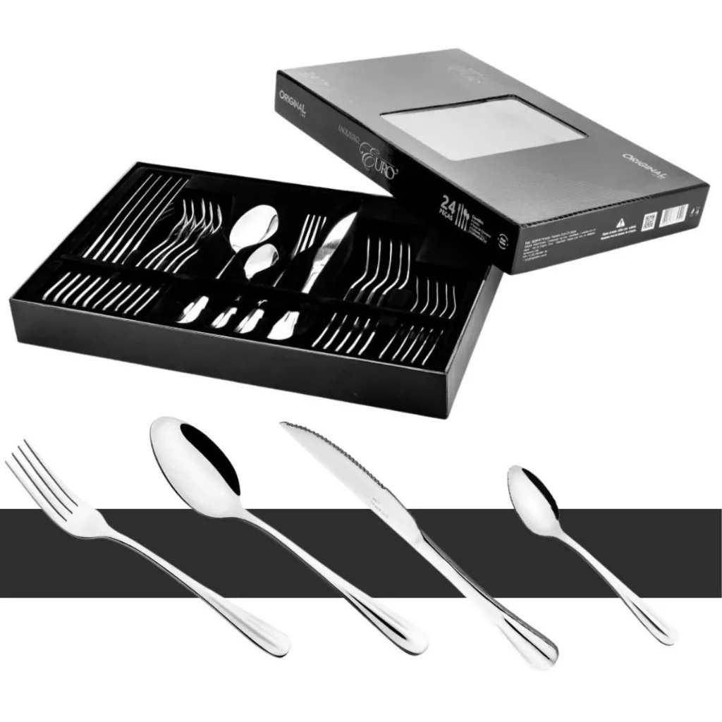 Jogo De Talheres Faqueiro Euro Com 24 Peças Completo De Aço Inox Designer Lindo E Elegante Original