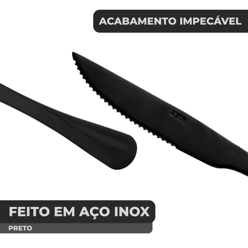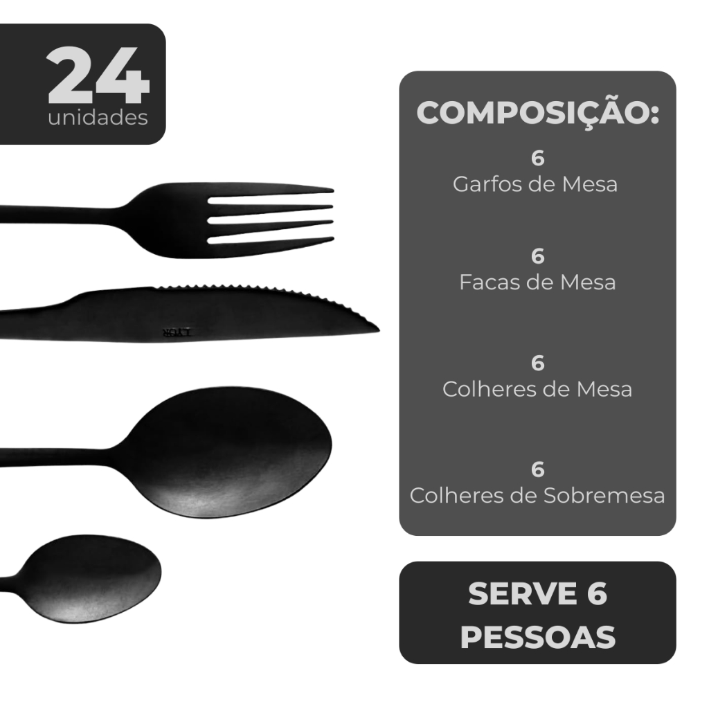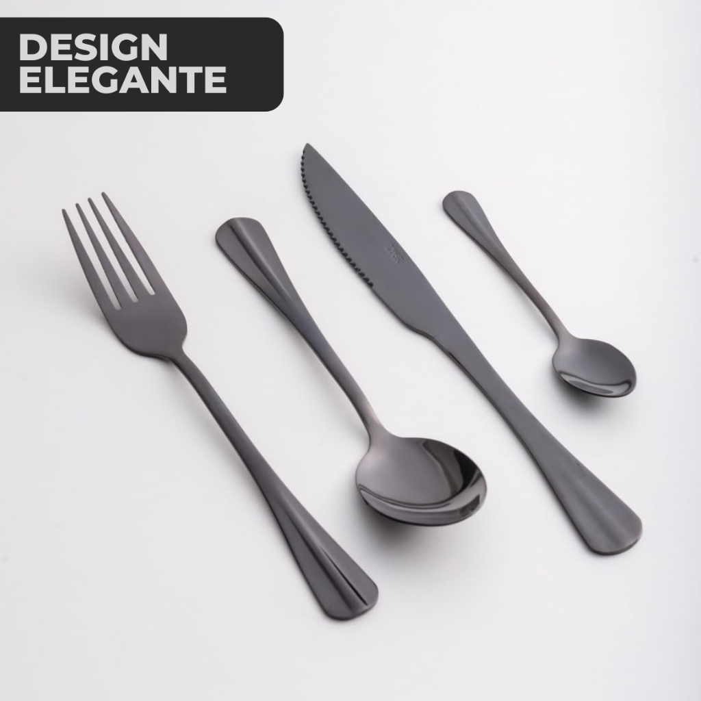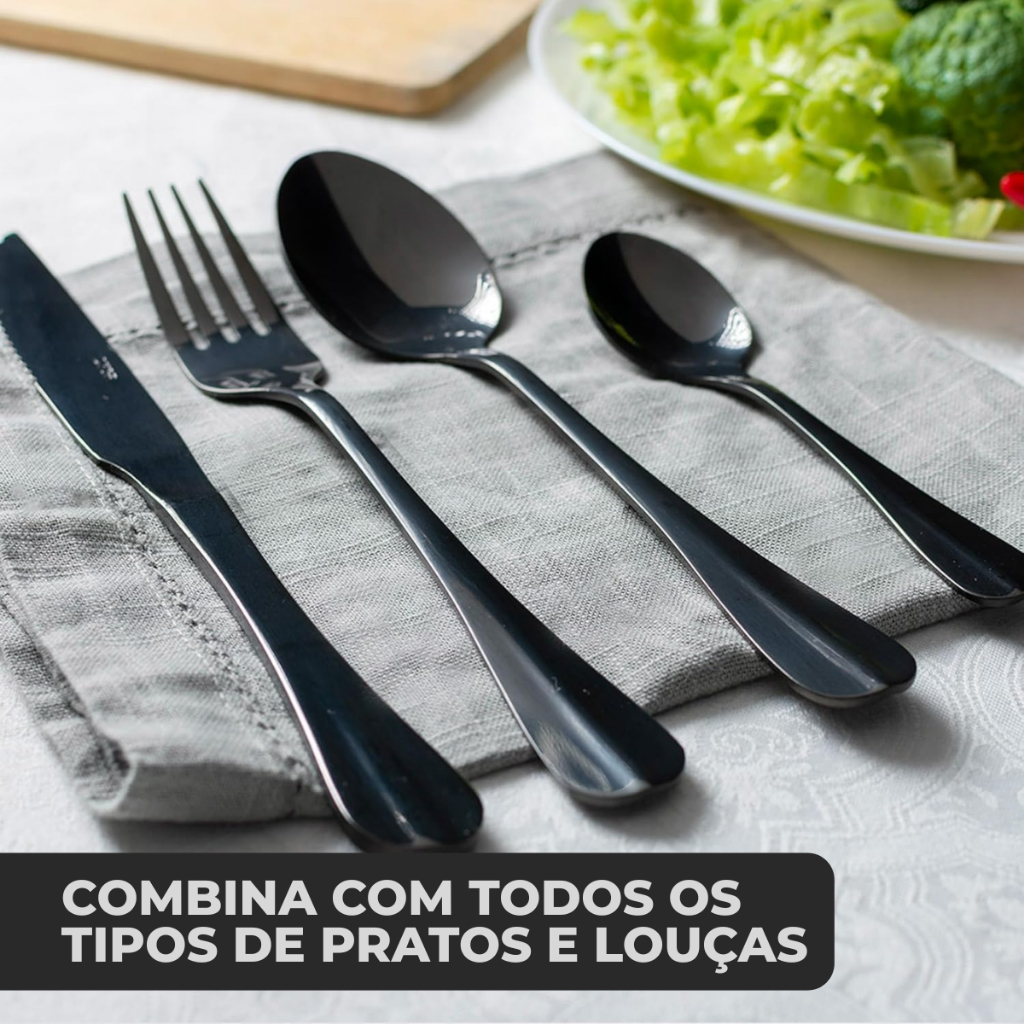 Jogo De Talheres Mesa 24 Pçs Garfo Faca Colher Aço Inox Positano Black Preto Luxo Lyor