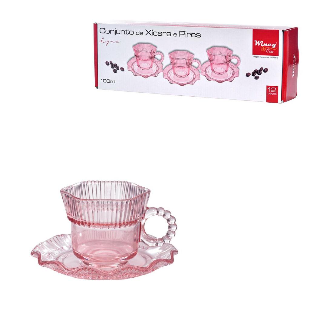 Jogo De Xicara e Pires Lynx Rose 100ml 12 Pcs