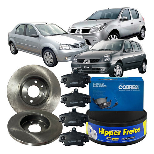 Jogo Disco Pastilha Freio Dianteira Sólido Clio Logan Sandero 1.0