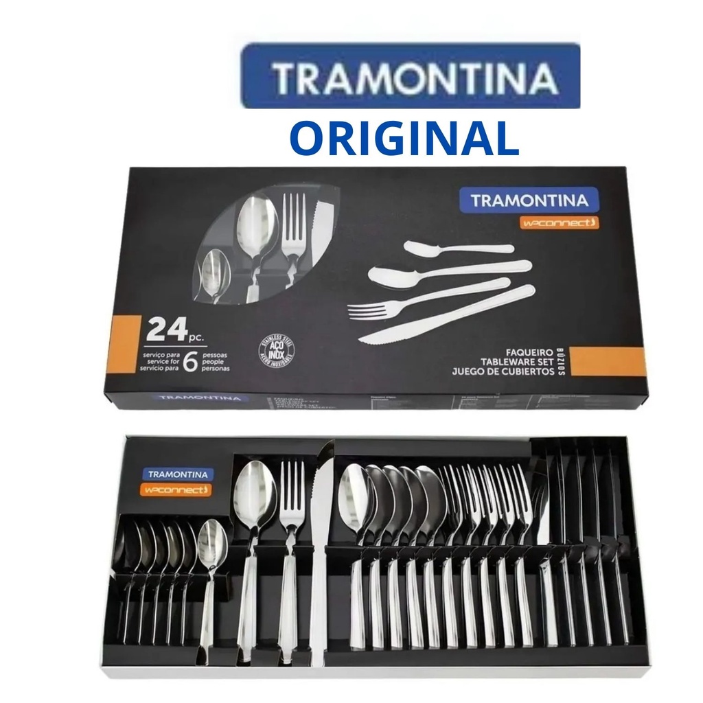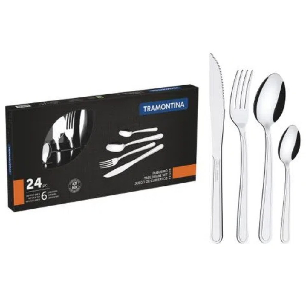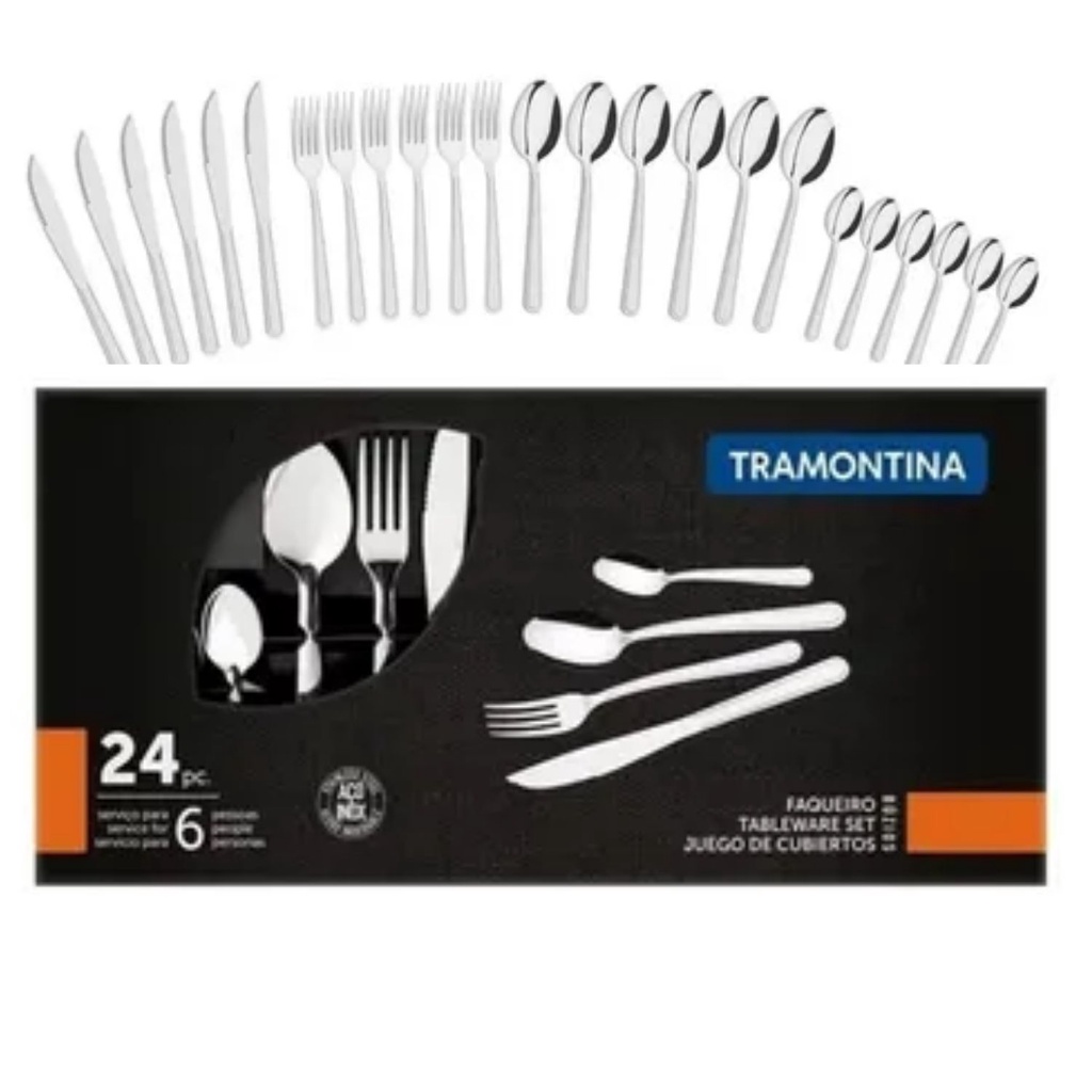 Jogo Faqueiro 24 Peças Talheres Para Cozinha Garfo Colher Faca Buzios Aço Inox Tramontina