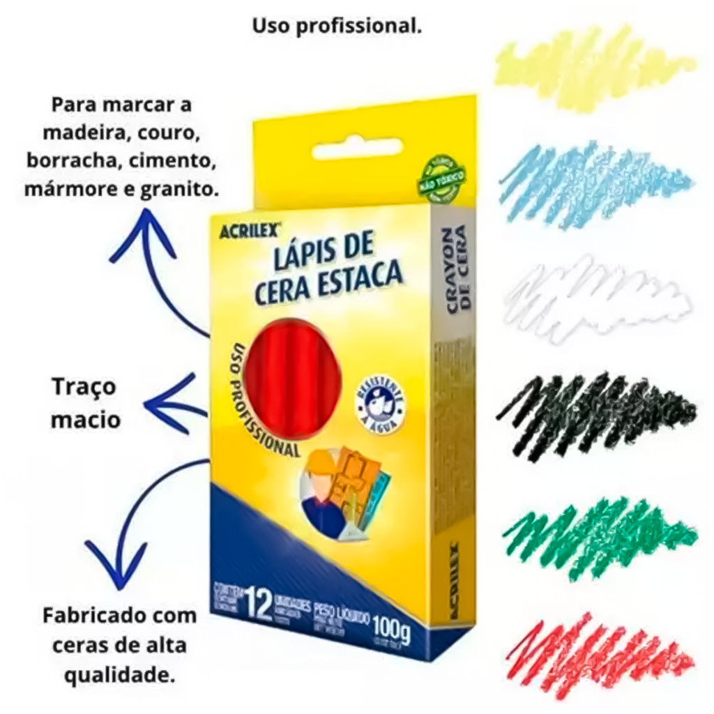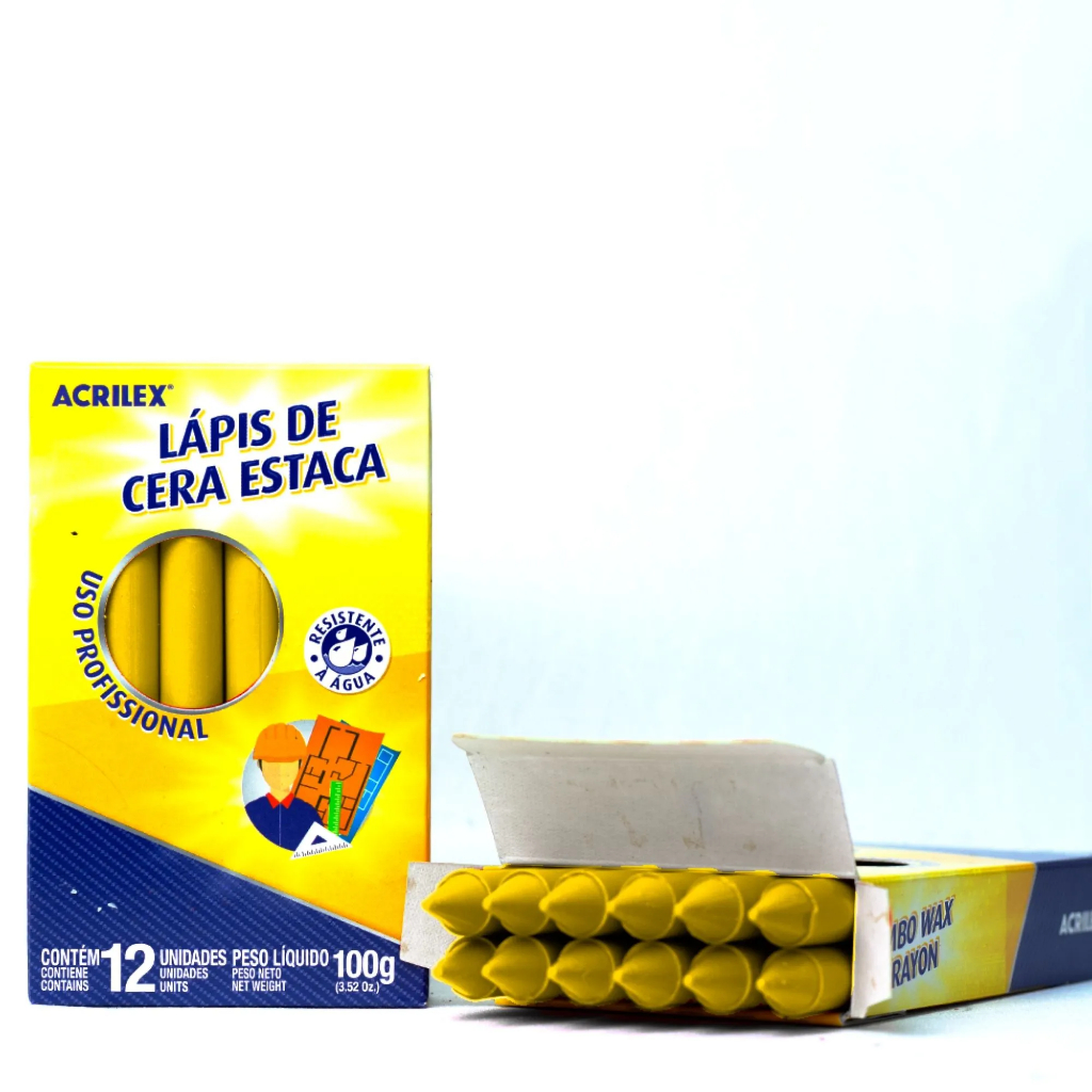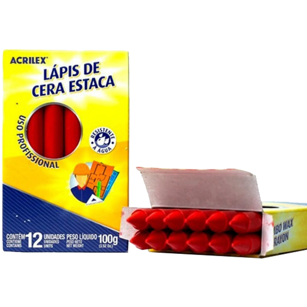 Jogo Giz De Cera Estaca Acrilex Para Demarcação Em Geral Obras Pisos Ferro Madeira Metalon 12 Peças