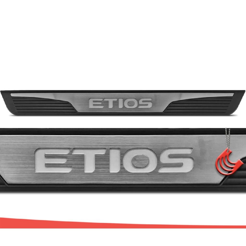 Jogo Kit Soleiras 2 Portas Toyota Etios - Protetora Iluminada Luz Led com Aço Escovado Adesiva