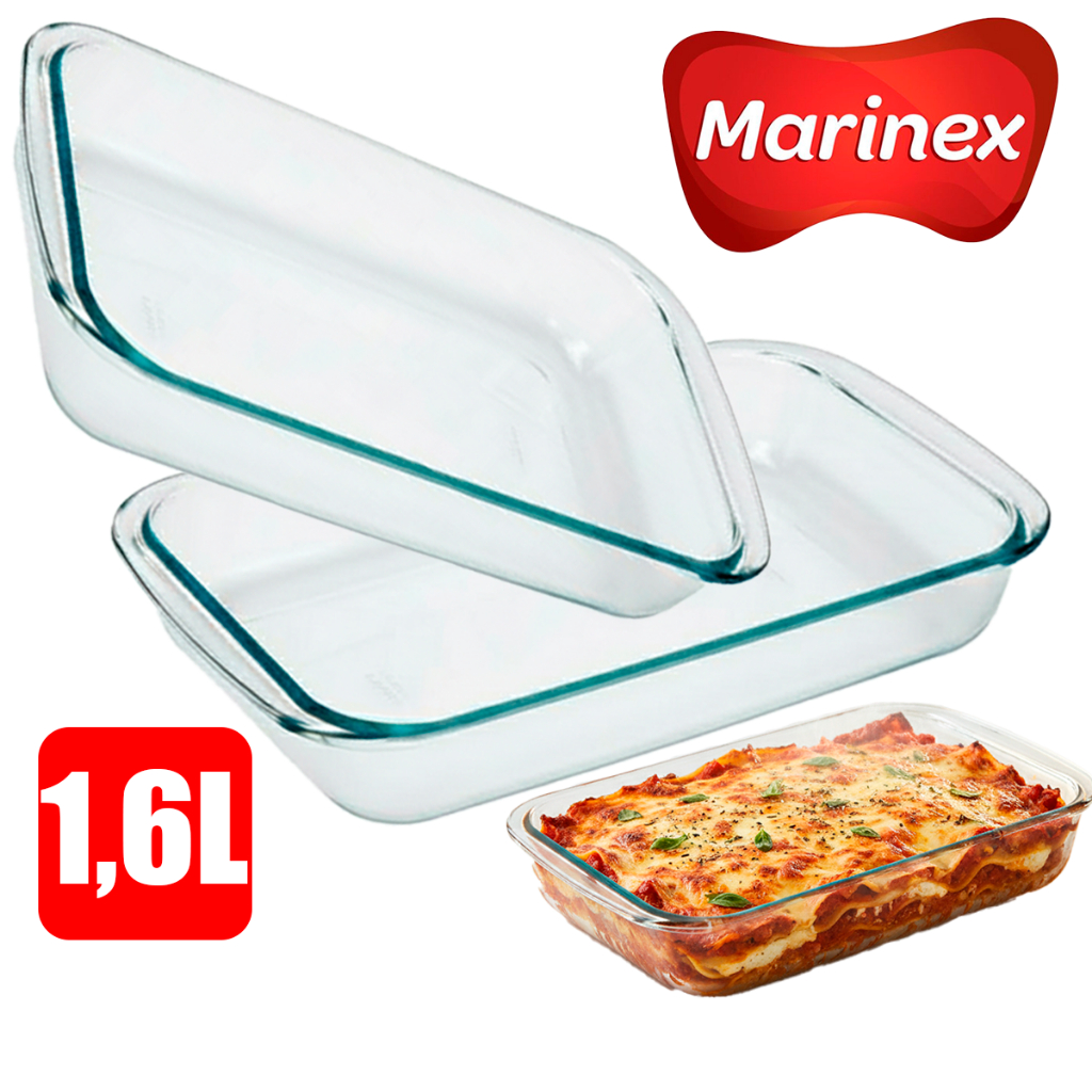 Jogo Kit de 2 Travessa 1,6litros Assadeira retângula Lasanheira Refratária Vidro Temperado Marinex