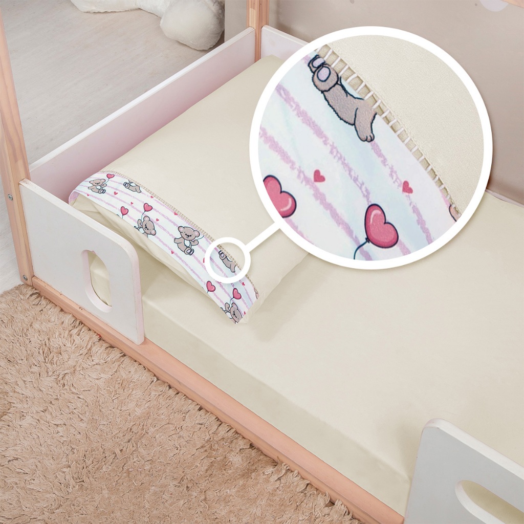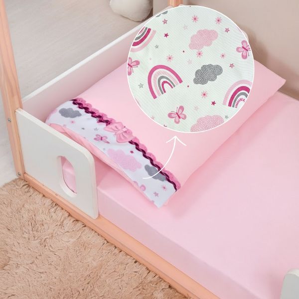 Jogo Lençol 2 peças Mini Cama 150x70cm Montessoriana Infantil Fronha Ponto Palito