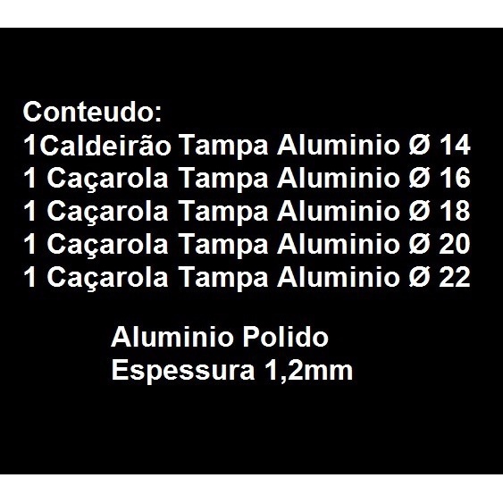 Jogo Panelas 5 Pçs Caldeirão Alumínio Polido Remaza 14 A 22