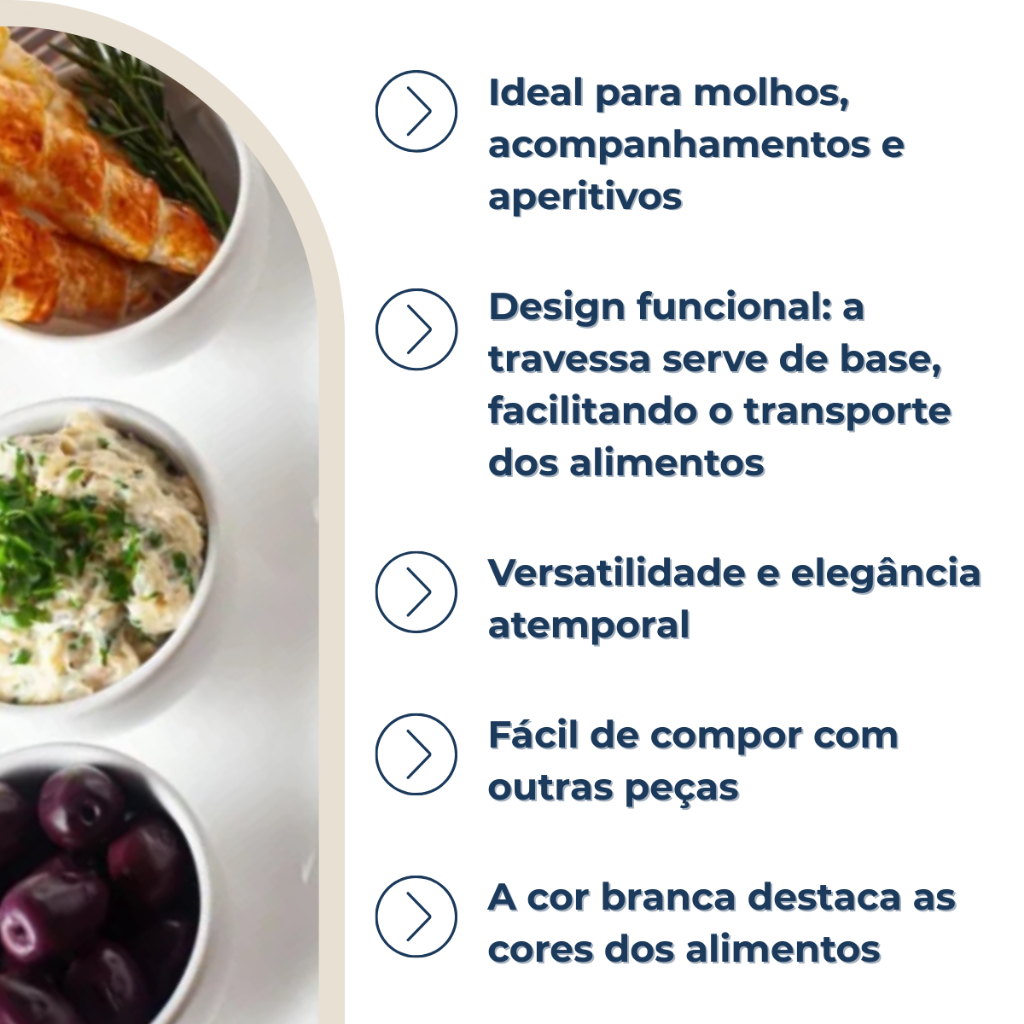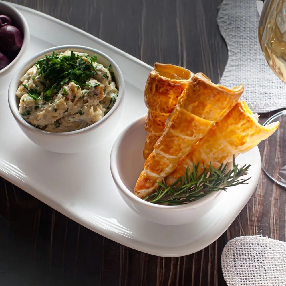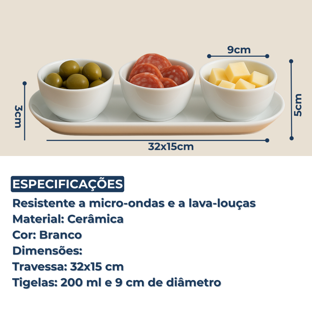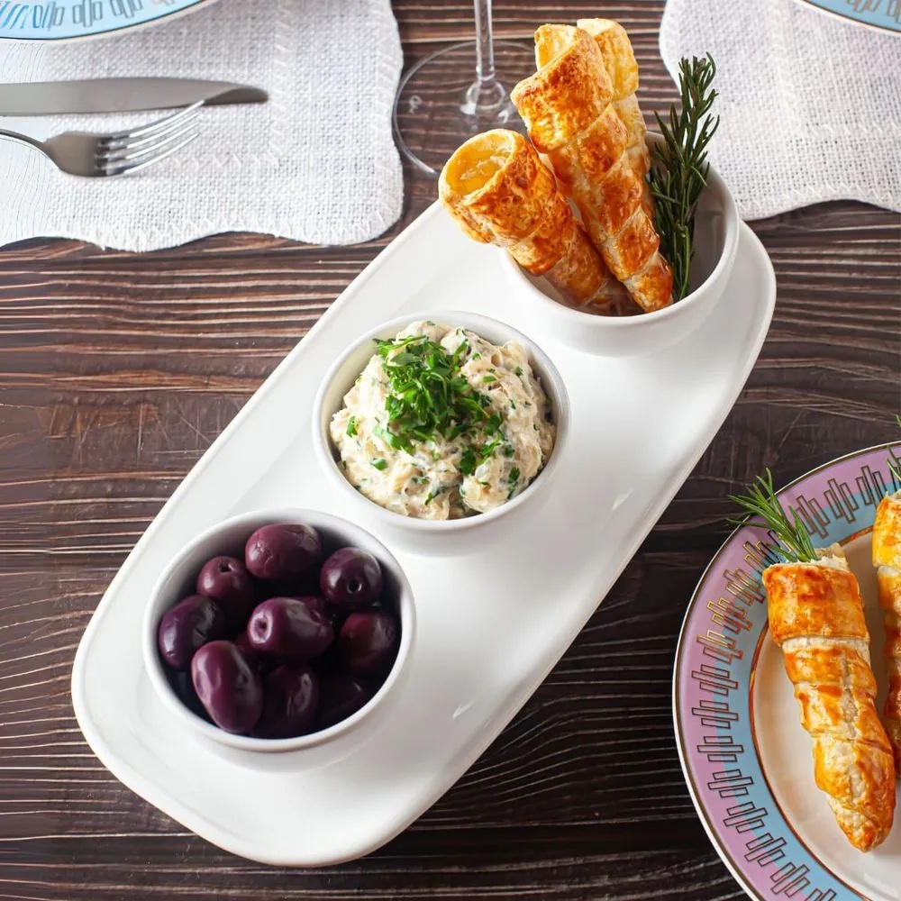 Jogo Petisqueira Bandeja Retangular 3 Bowls Para Servir Branco Oxford