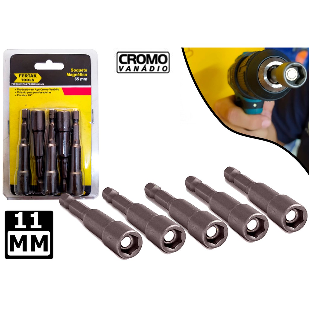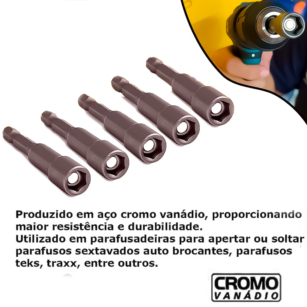 Jogo Soquete Ponta Bits Canhão Para Parafusadeira Cromo Vanádio 5 Peças - Magnetizado Várias Medidas