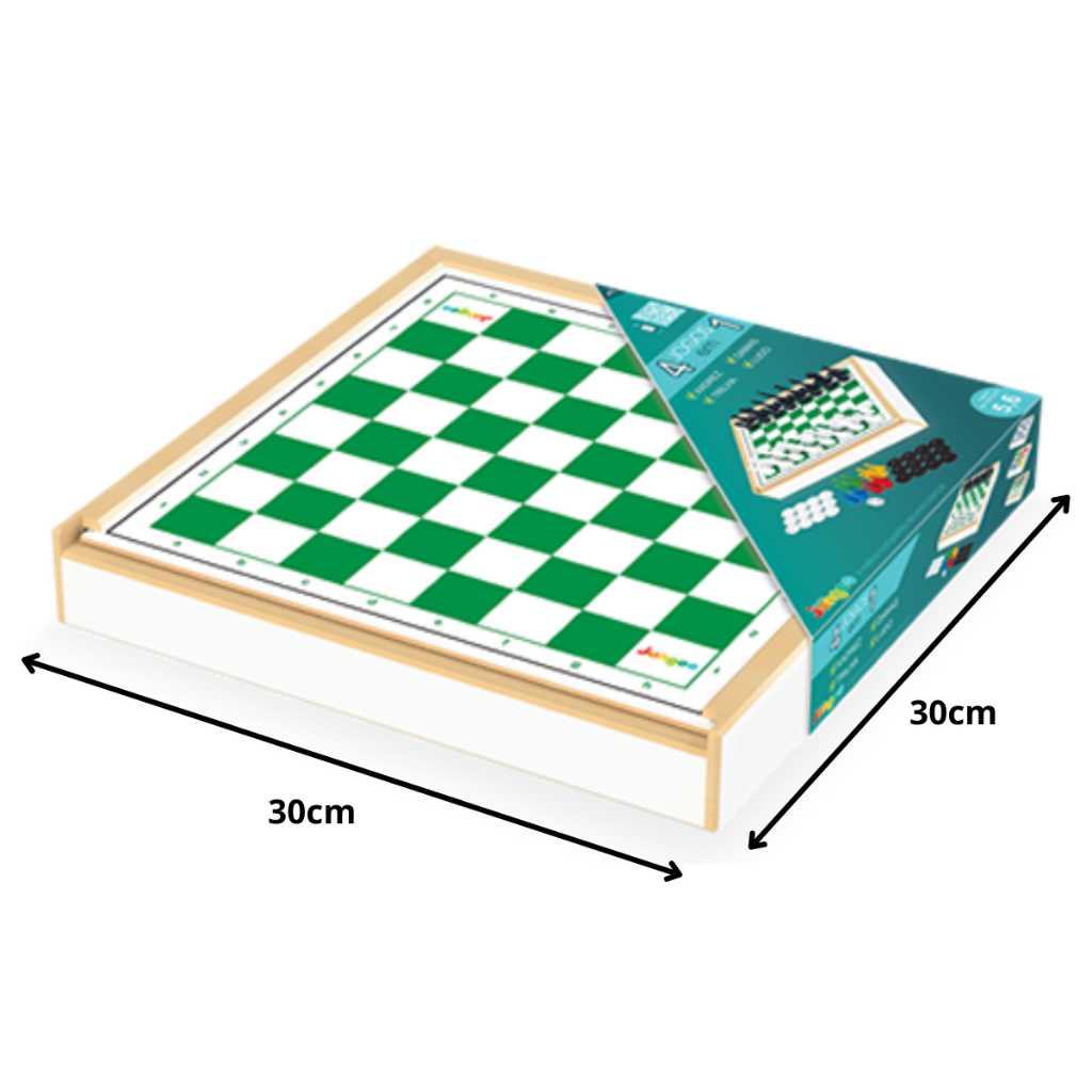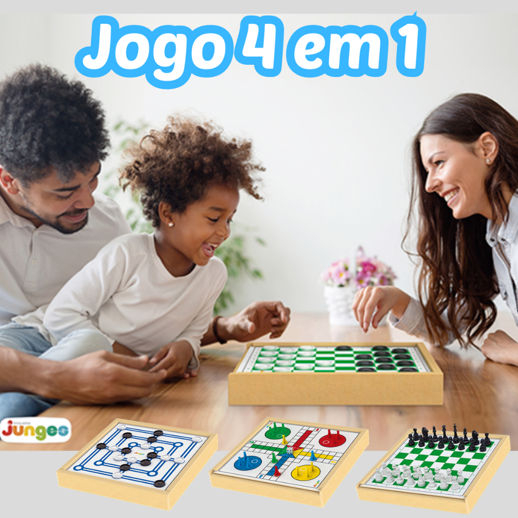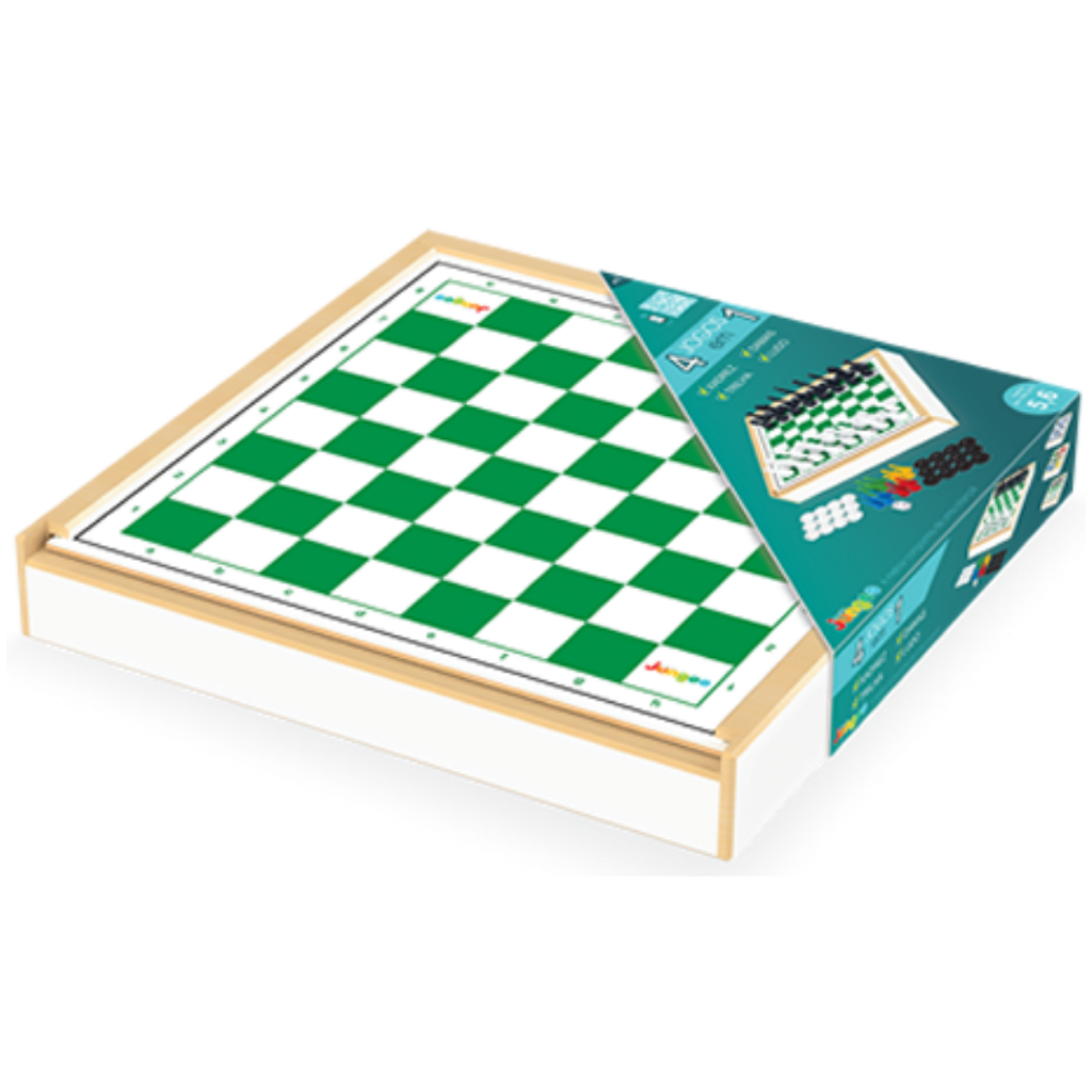 Jogo Tabuleiro Dama Ludo Xadrez Trilha Tabuleiro Madeira 4x1 Brinquedos Junges
