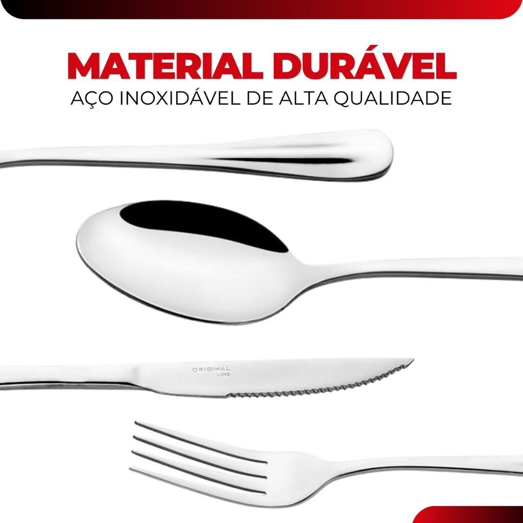 Jogo Talher Inox 48 Pecas Garfo Faca Colher Sobremesa Restaurante Buffet Premium Euro Original Line