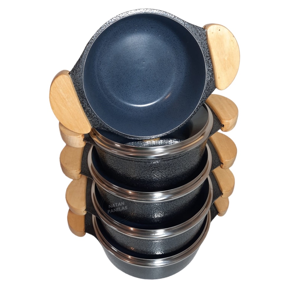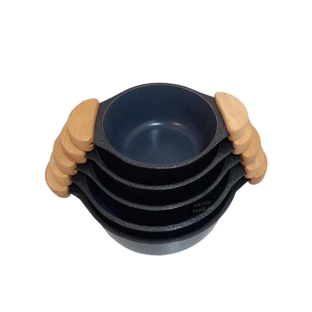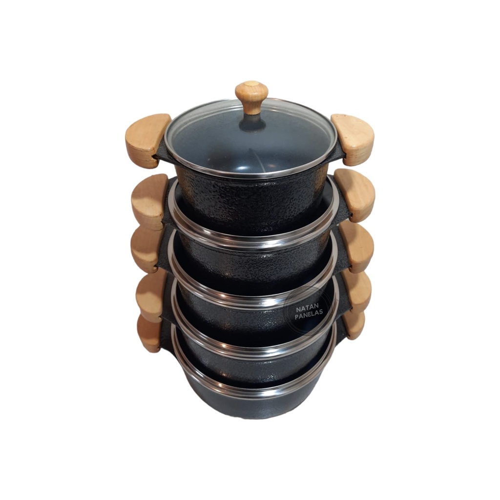 Jogo com 5 Panelas Antiaderente Cerâmica Pretas de Alumínio Fundido com Tampas de Vidro