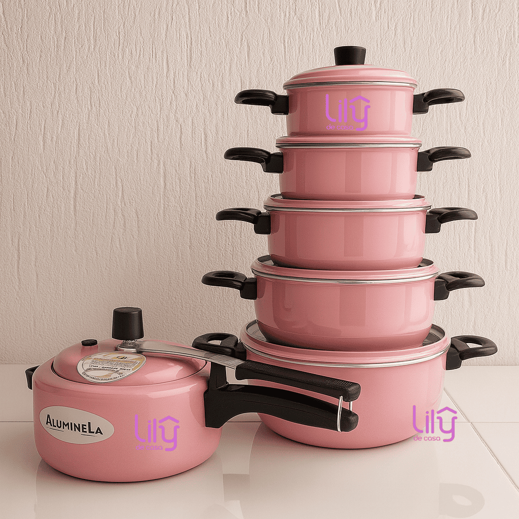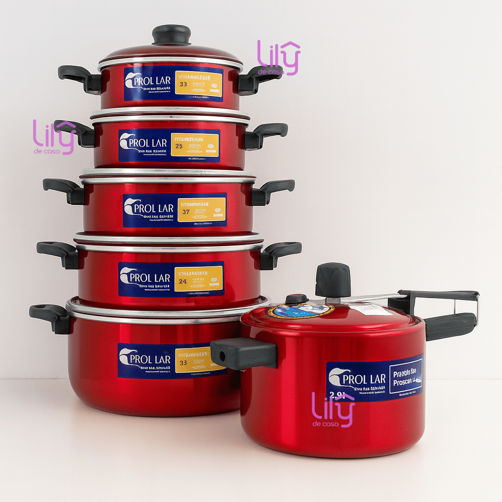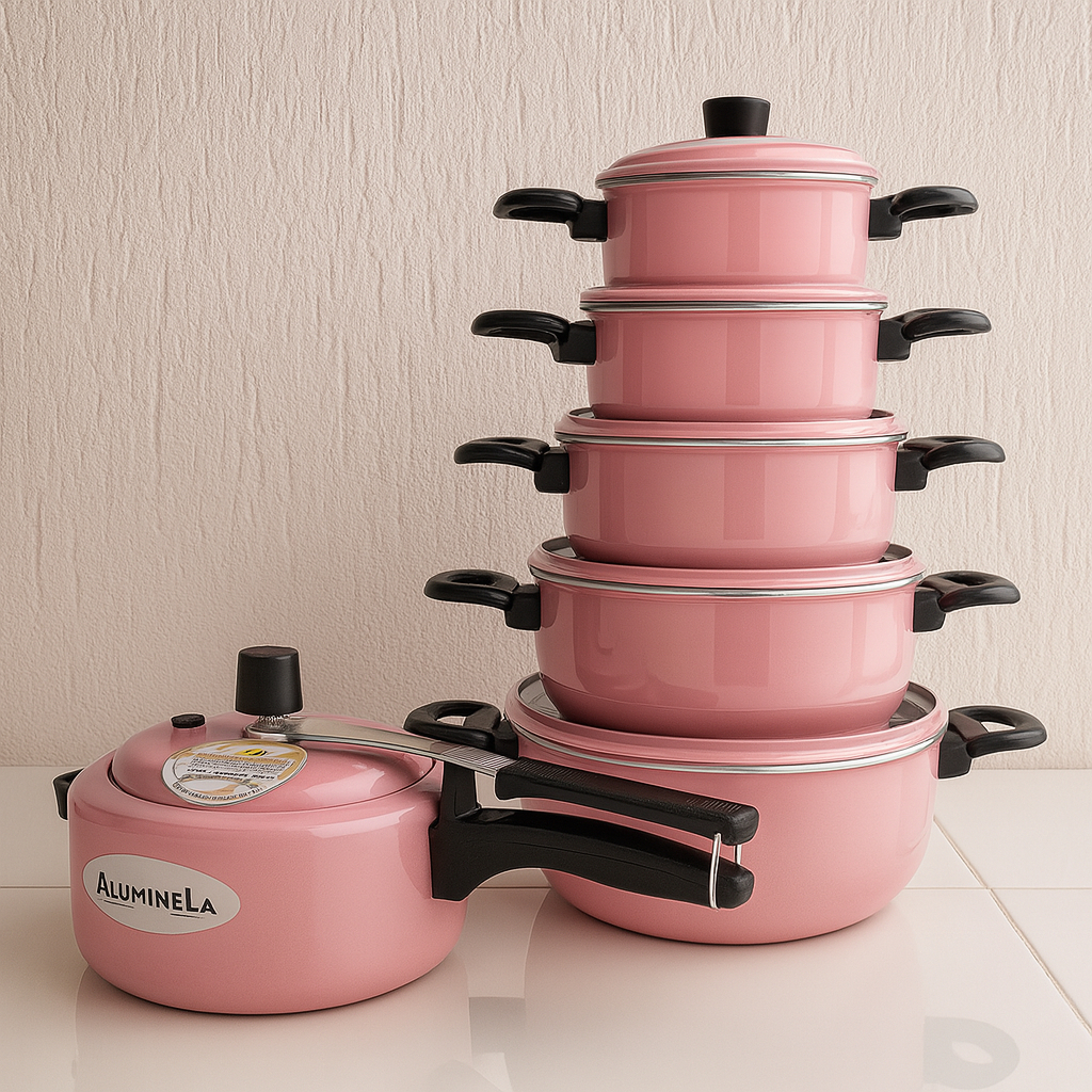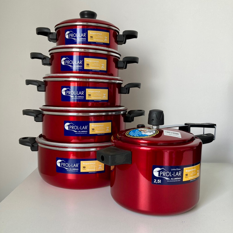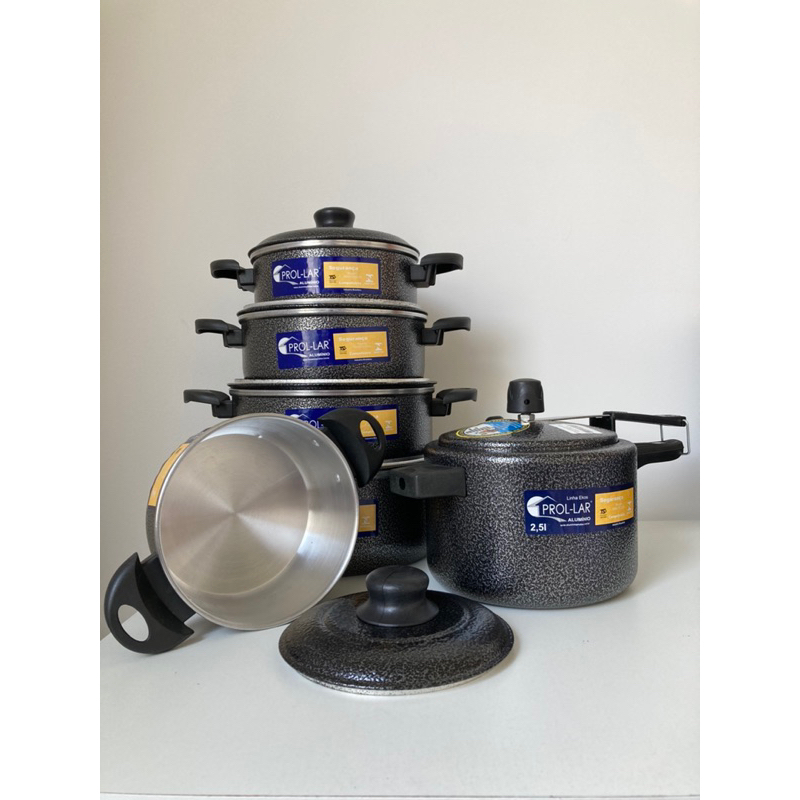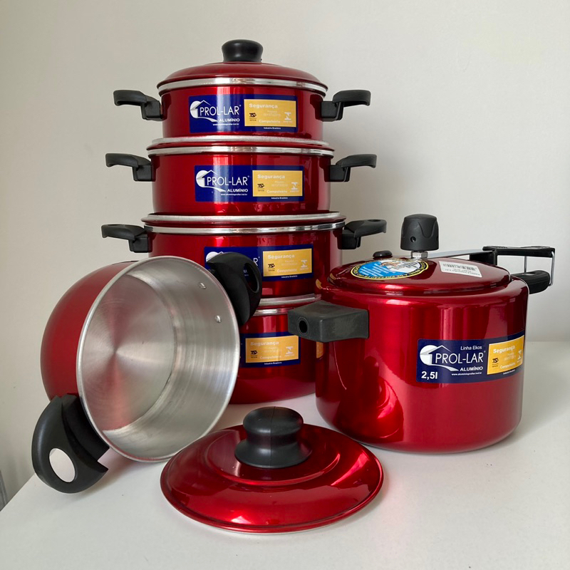 Jogo com 5 panelas em alumínio de qualidade + Panela de pressão 2,5 litros.