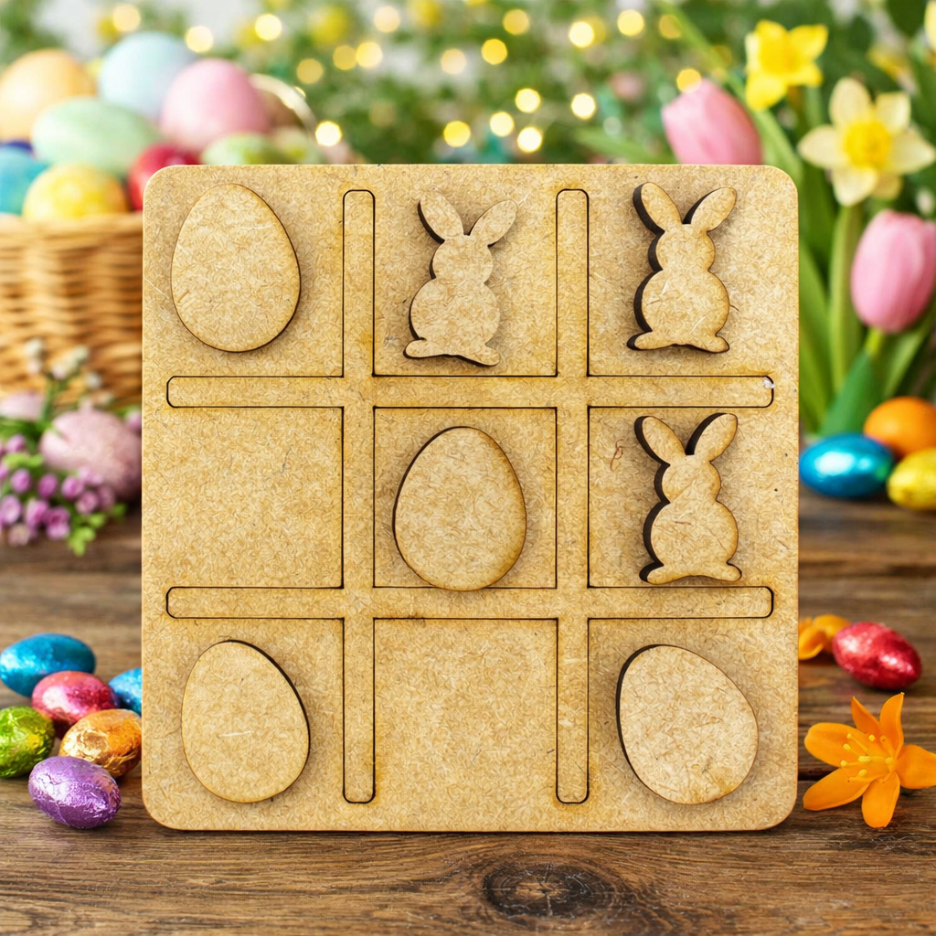 Jogo da Velha Páscoa MDF 25 Completos Peças Coelho Ovo Lembrancinhas Brinquedo Infantil Crianças