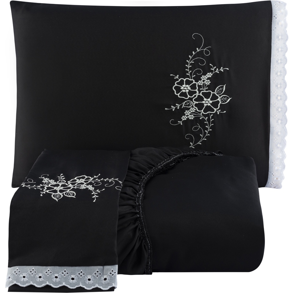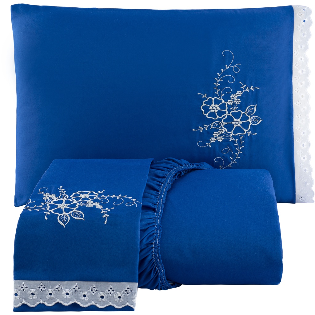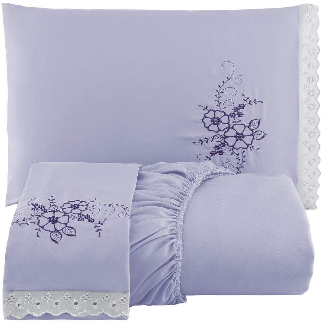 Jogo de Cama Box Casal Com Elástico e Fronhas Bordadas