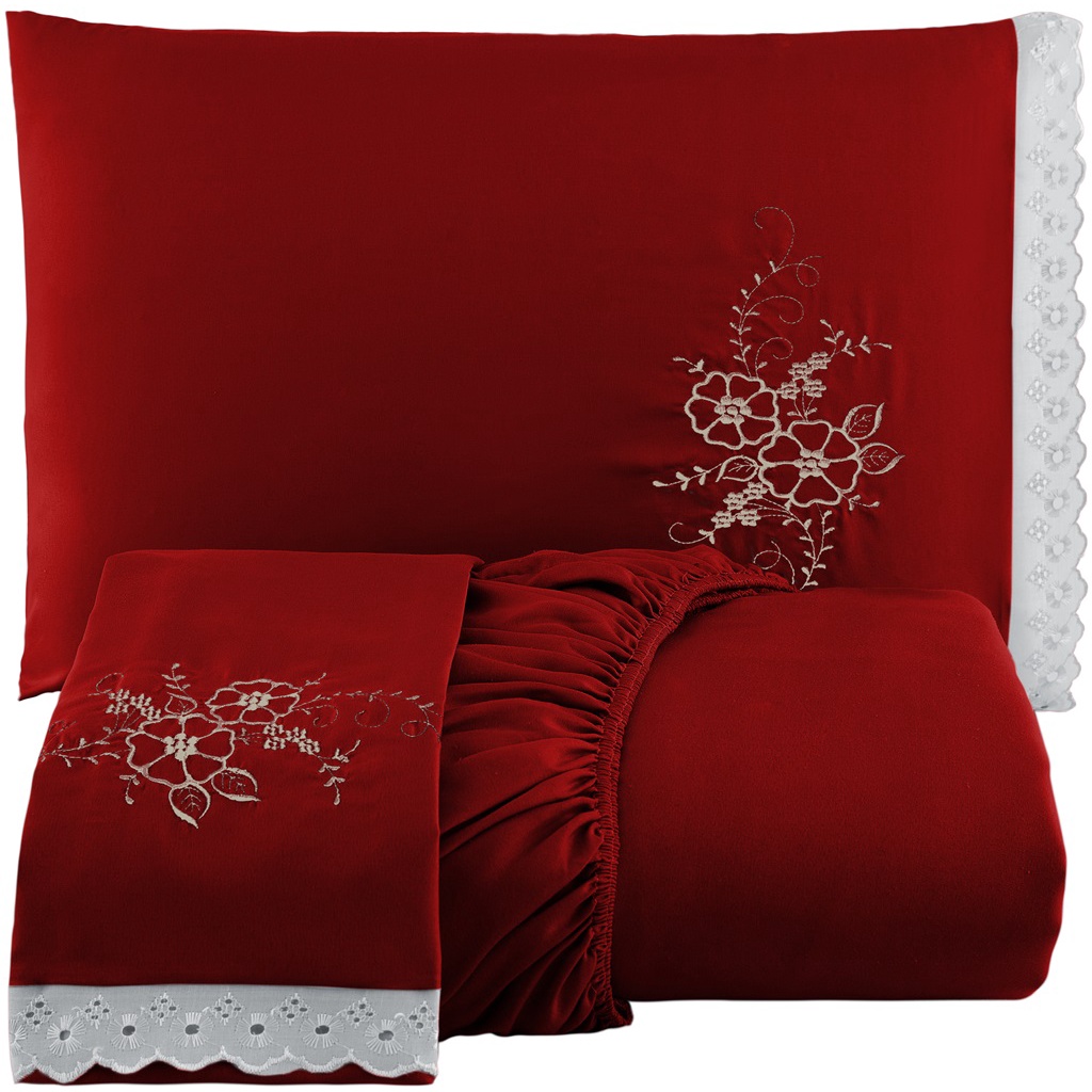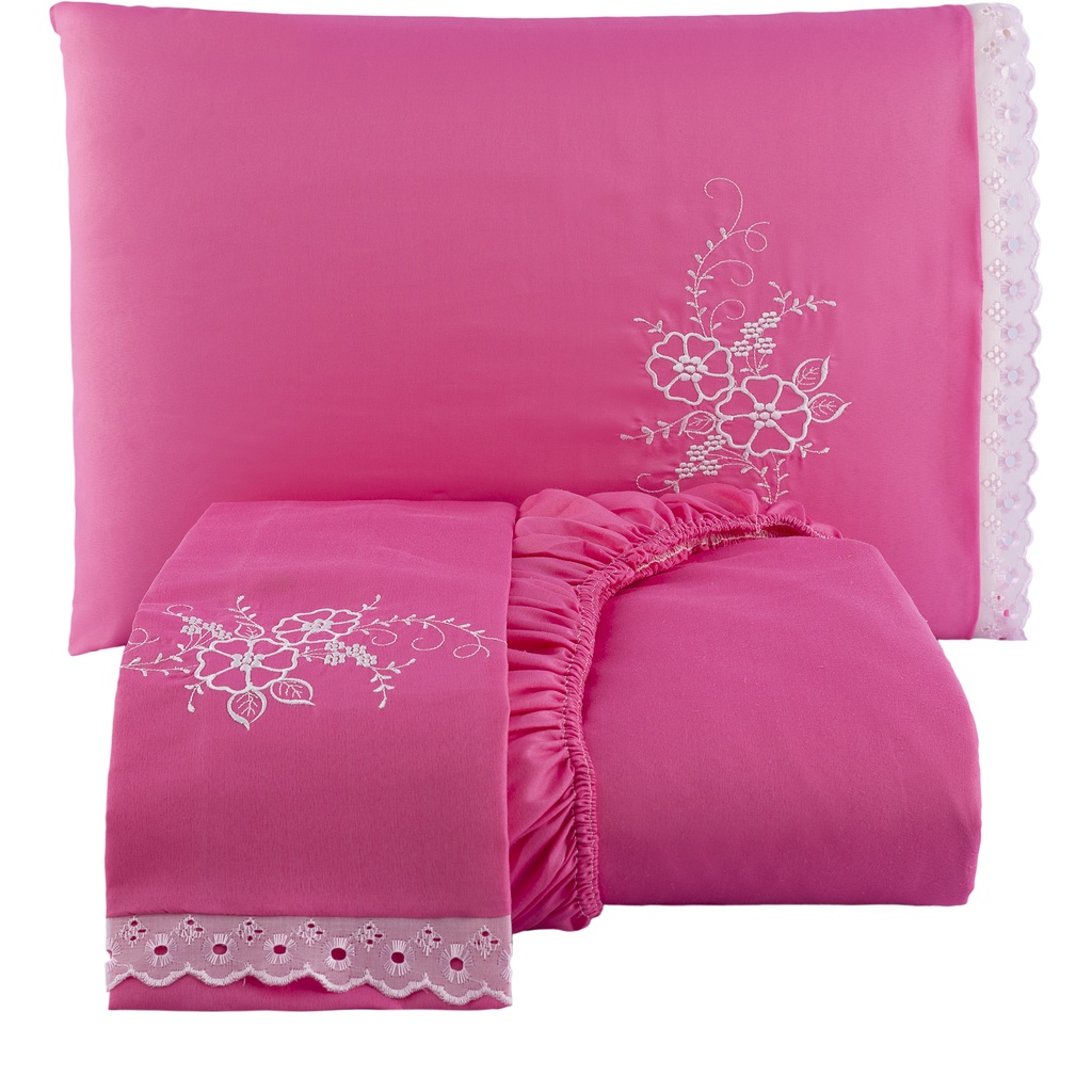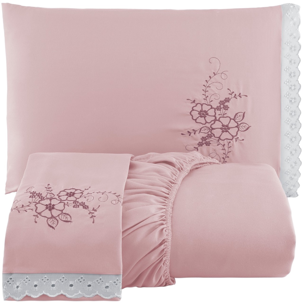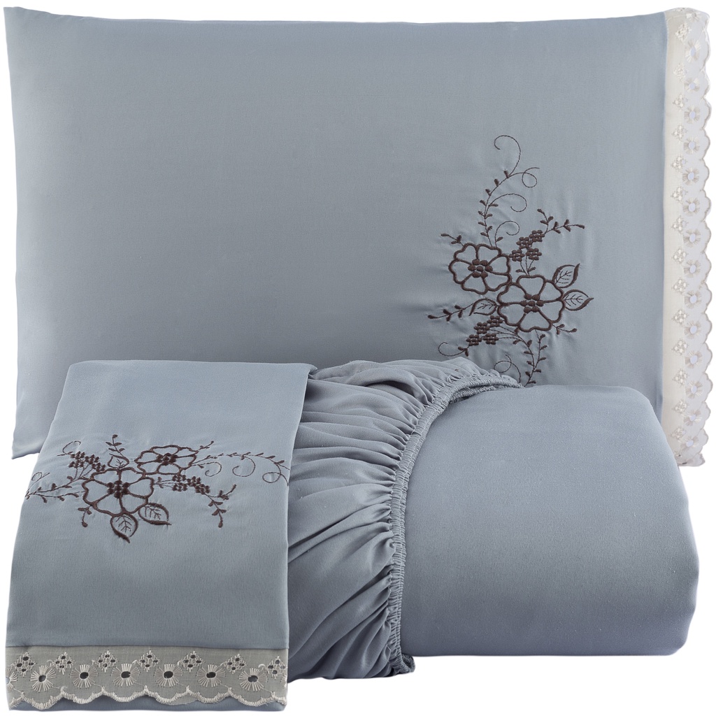 Jogo de Cama Box Casal Com Elástico e Fronhas Bordadas