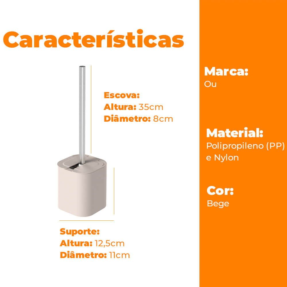 Jogo de Escovas Sanitárias Com Suporte e Tampa 2 Peças Dual Bege - Ou