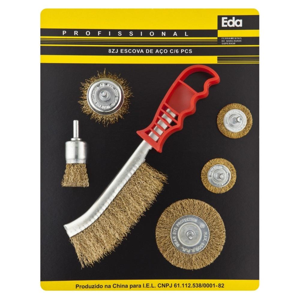 Jogo de Escovas de Aço Kit com 6 Peças Profissional 8ZJ EDA