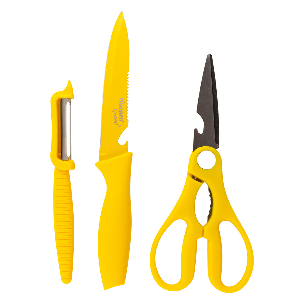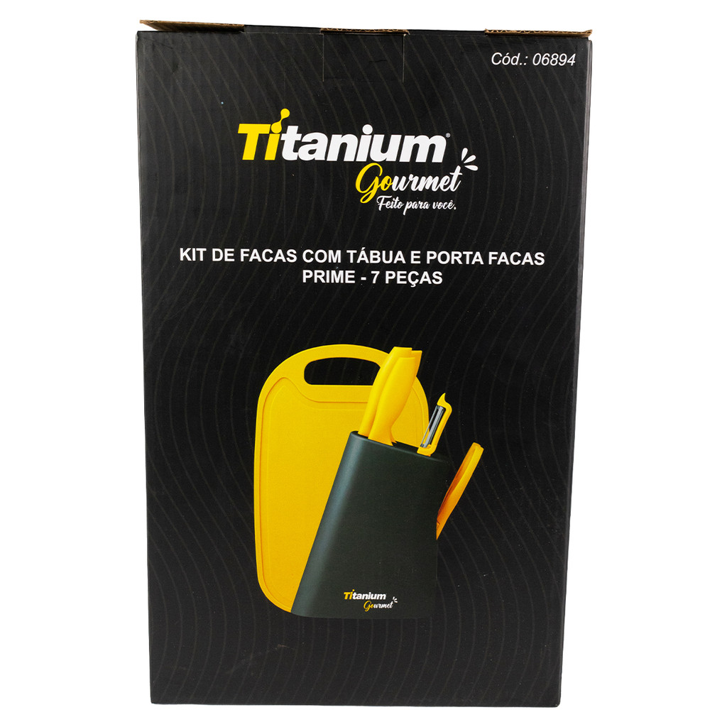 Jogo de Facas Cozinha Prime com Tábua e Porta Facas 07 Peças Titanium Gourmet