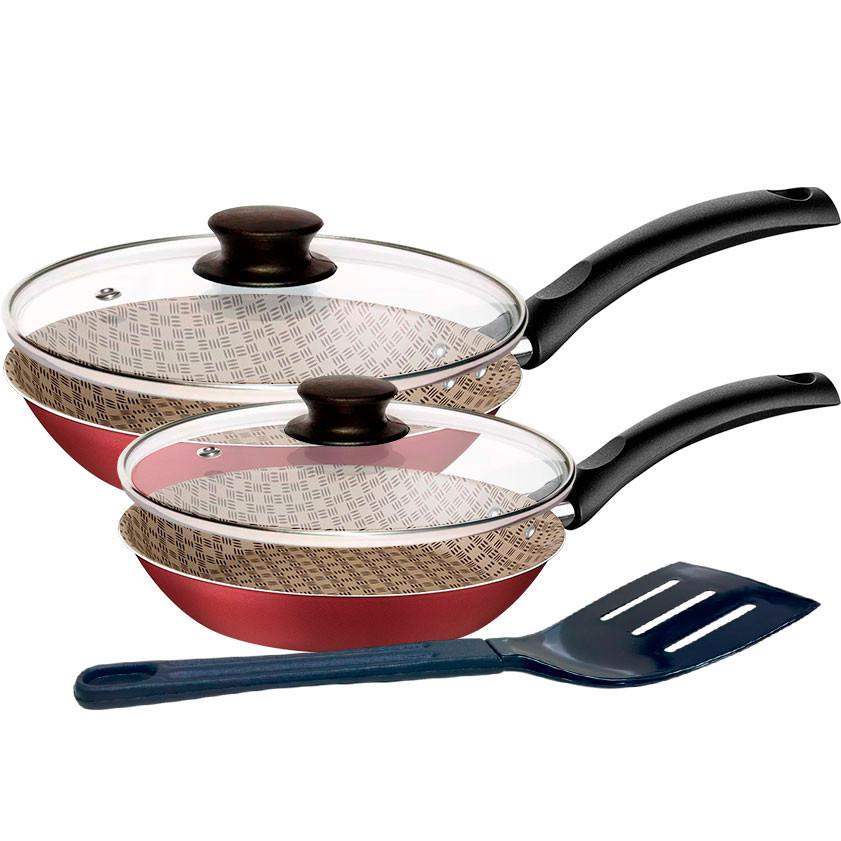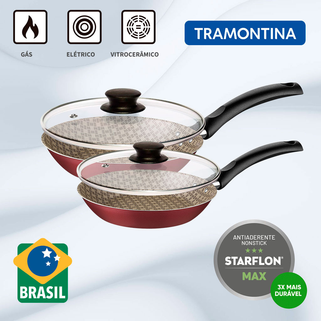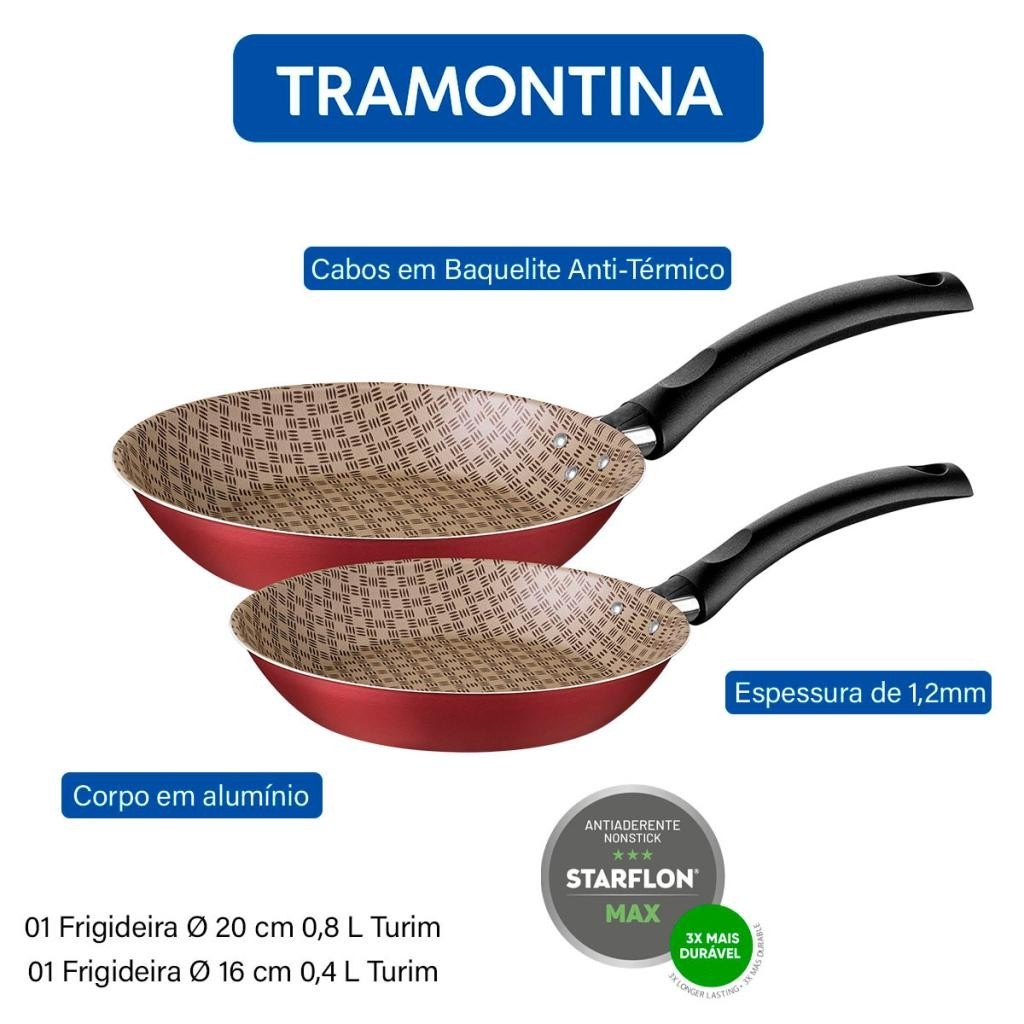Jogo de Frigideiras com Tampa Tramontina Turim Antiaderente 20 cm e 16 cm Vermelho 2 Pçs