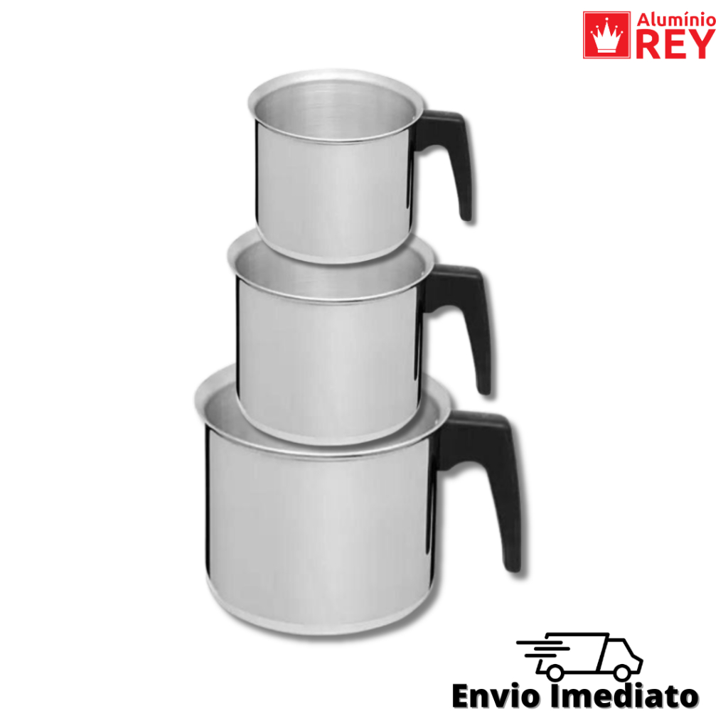 Jogo de Leiteiras 3 peças Polido - Kit Fervedor 12, 14, 16 - Qualidade garantida ou o seu dinheiro de volta