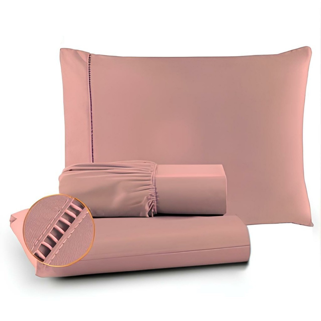 Jogo de Lençol 03 Peças 400 Fios Cama Solteiro Casal Queen King Percal Ponto Palito