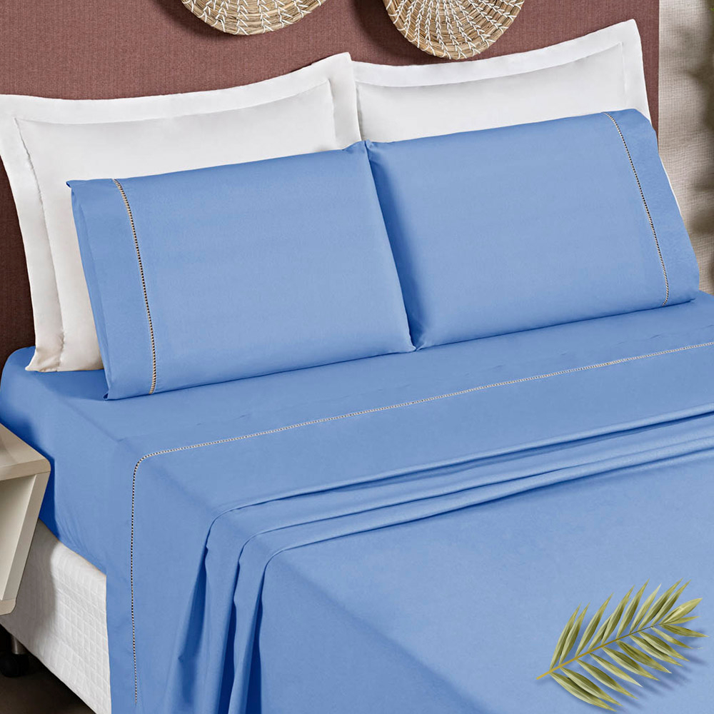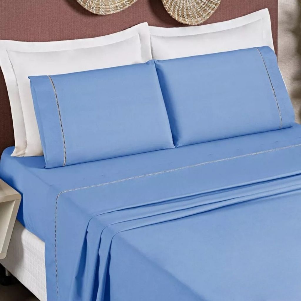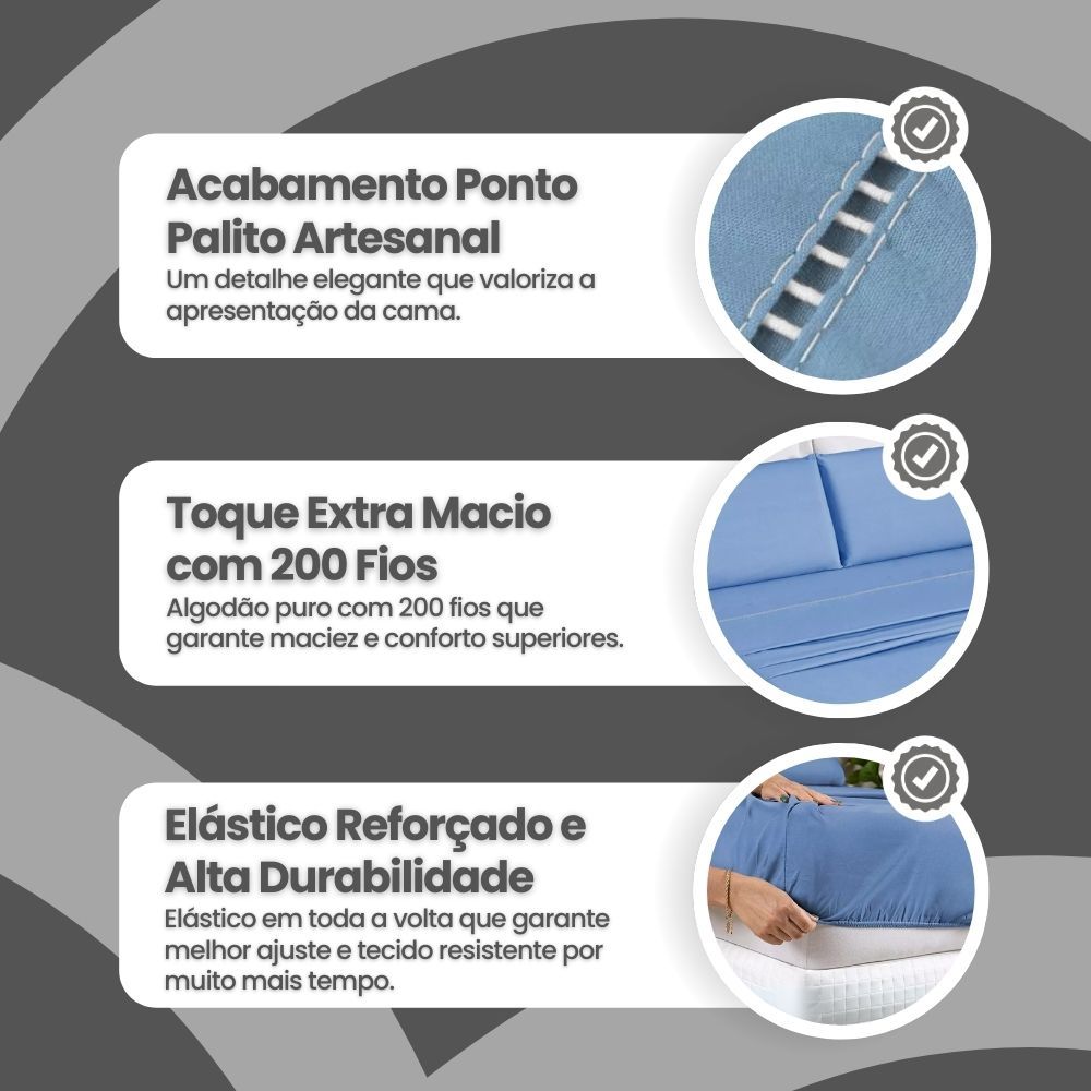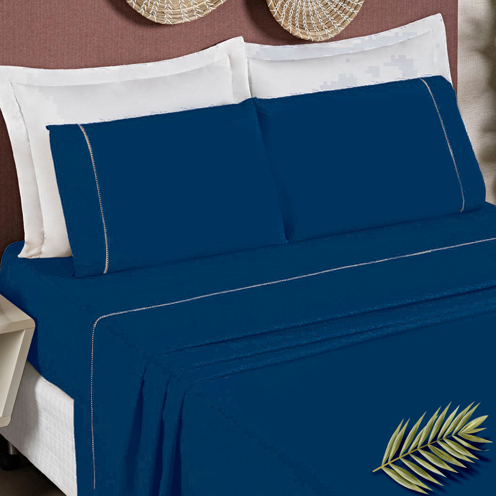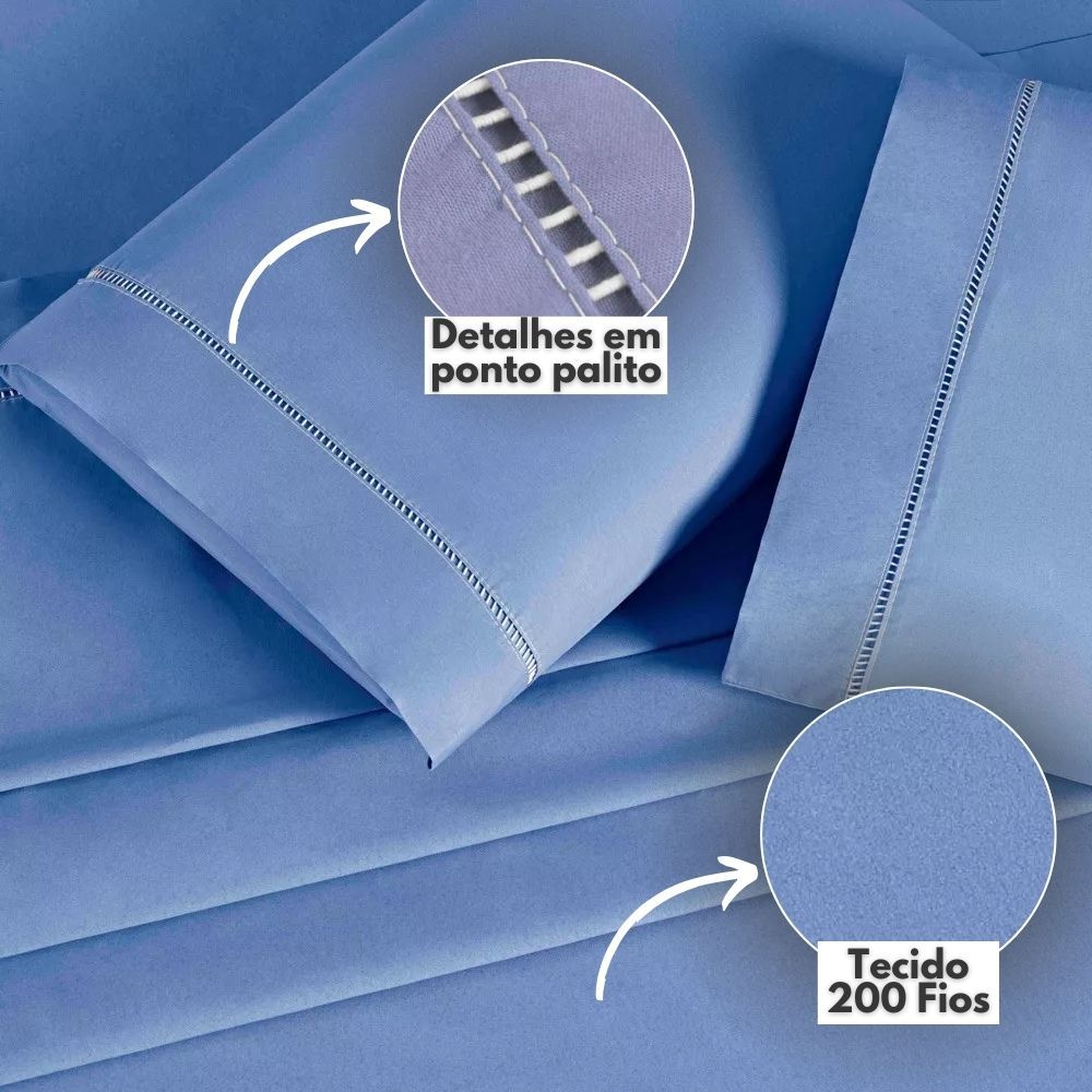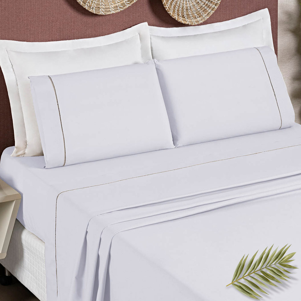 Jogo de Lençol 100% algodão 200 fios Ponto Palito casal queen king Solteiro 03 Peças para cama box