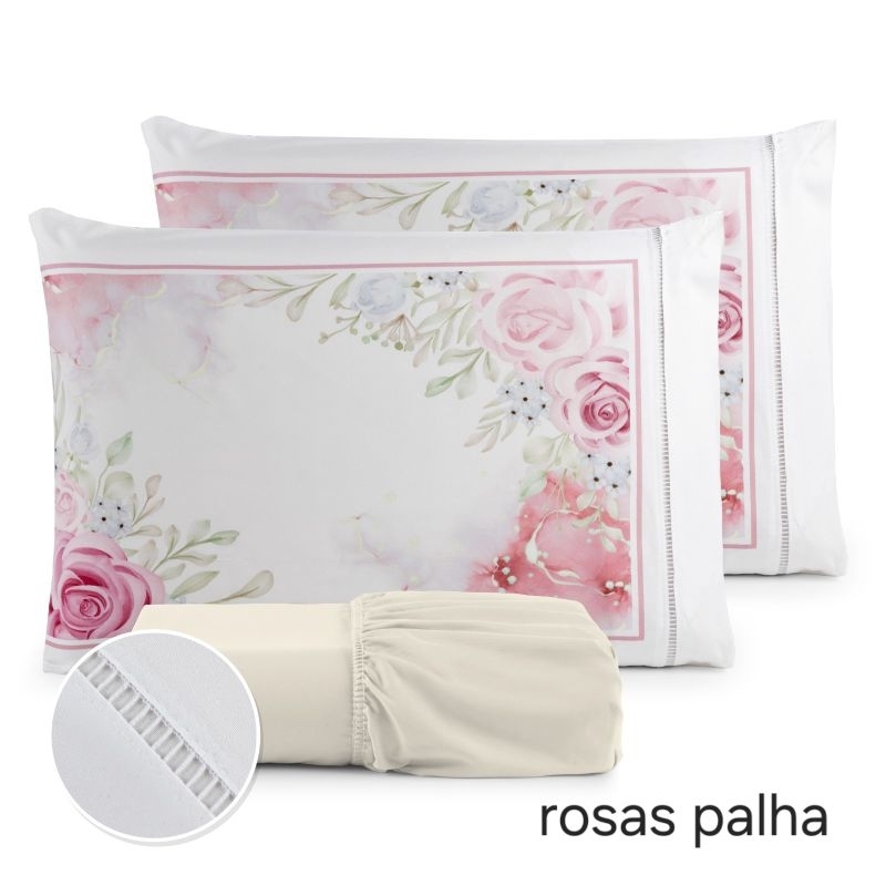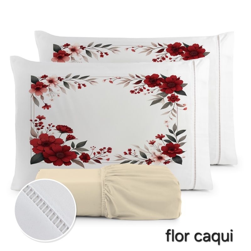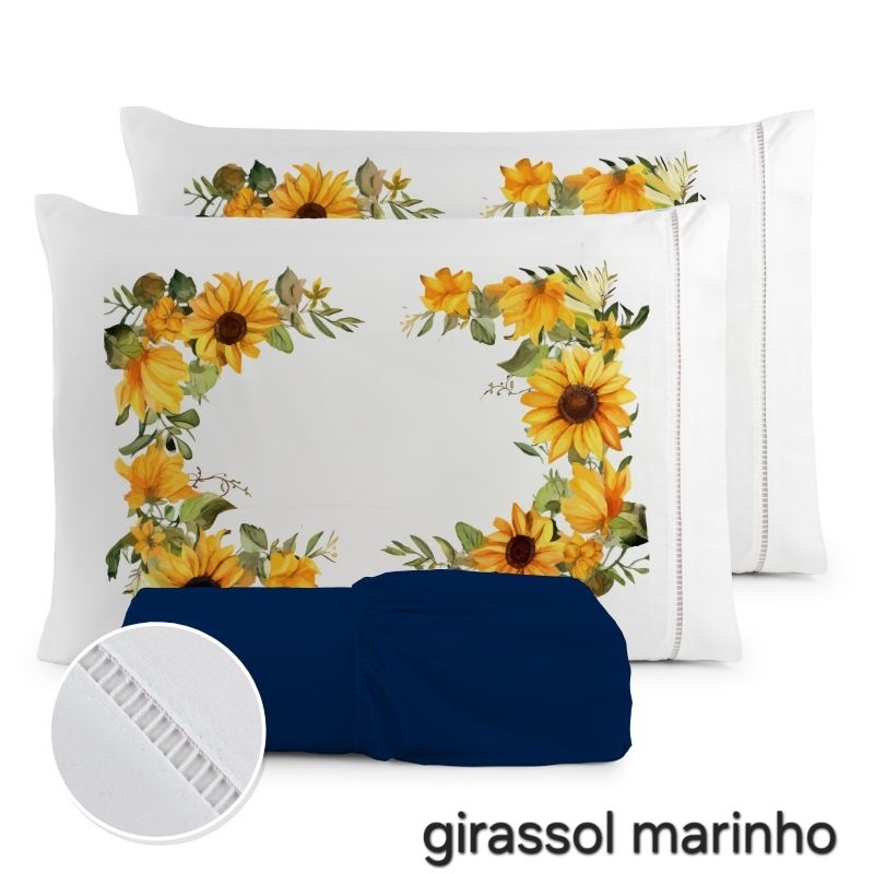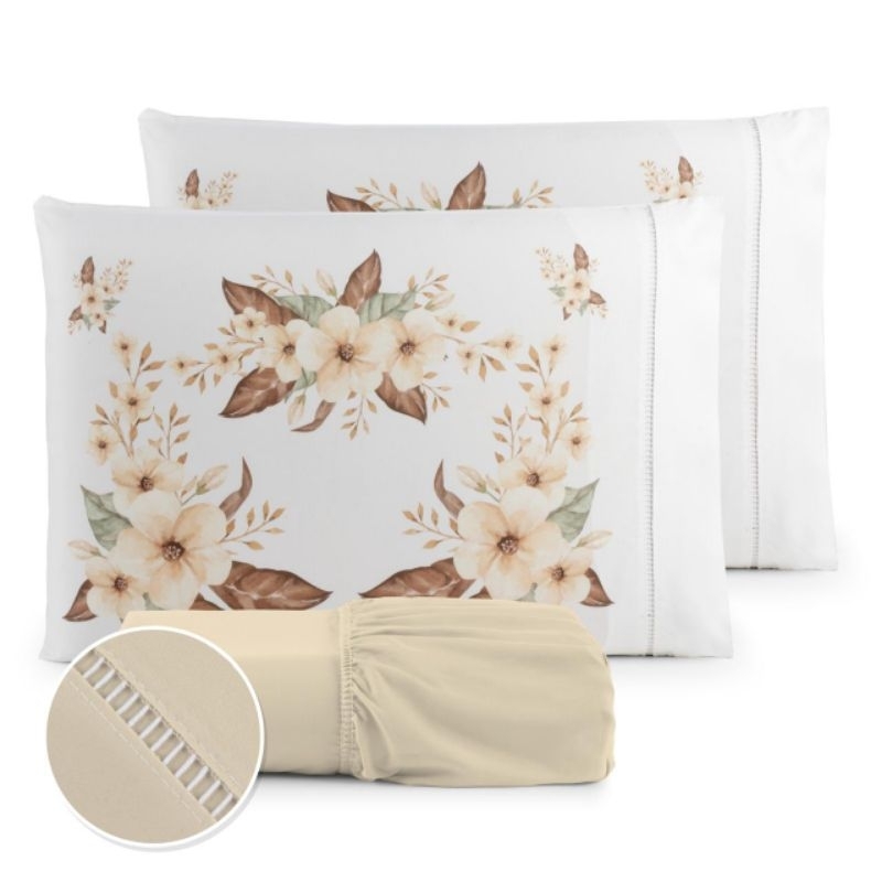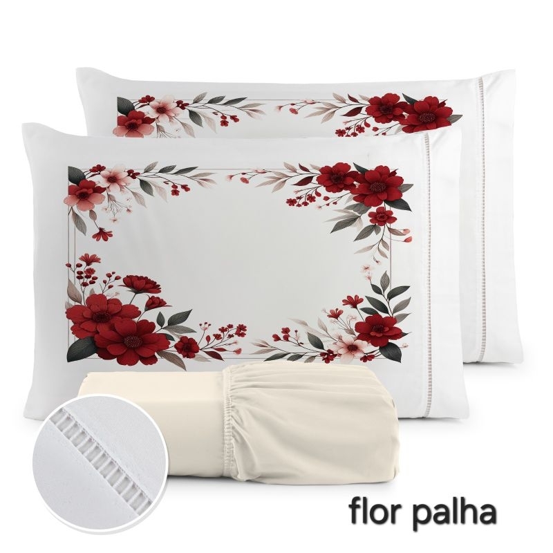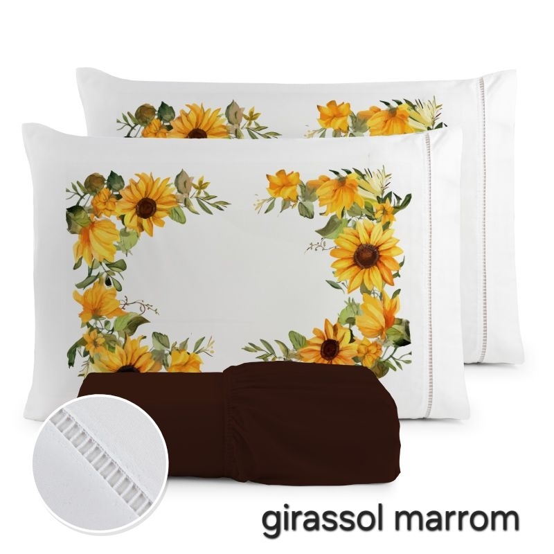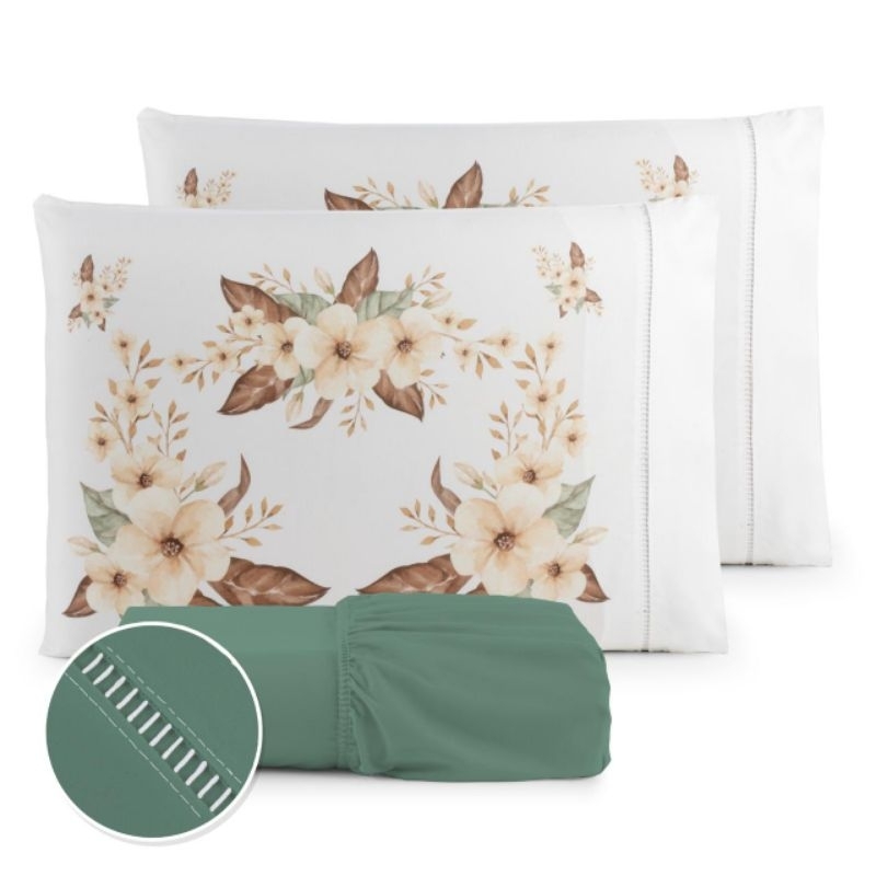 Jogo de Lençol 3 Pçs king/Queen estampado com elástico Casal Padrão