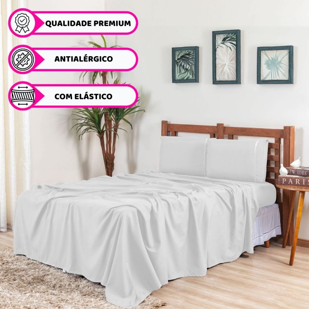 Jogo de Lençol 4 Peças Com Elástico Micropercal Acetinado Queen Ponto Palito 400 Fios